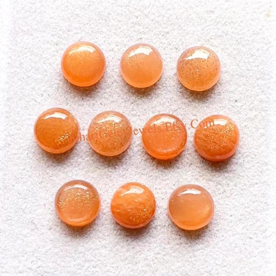 NATURAL Peach Moonstone 8 MM Round Shape Smooth Cabochon Gemstone 10 Pieces Lot, AAA+ Natural Peach Moonstone With Flat Back For Handmade Jewelry