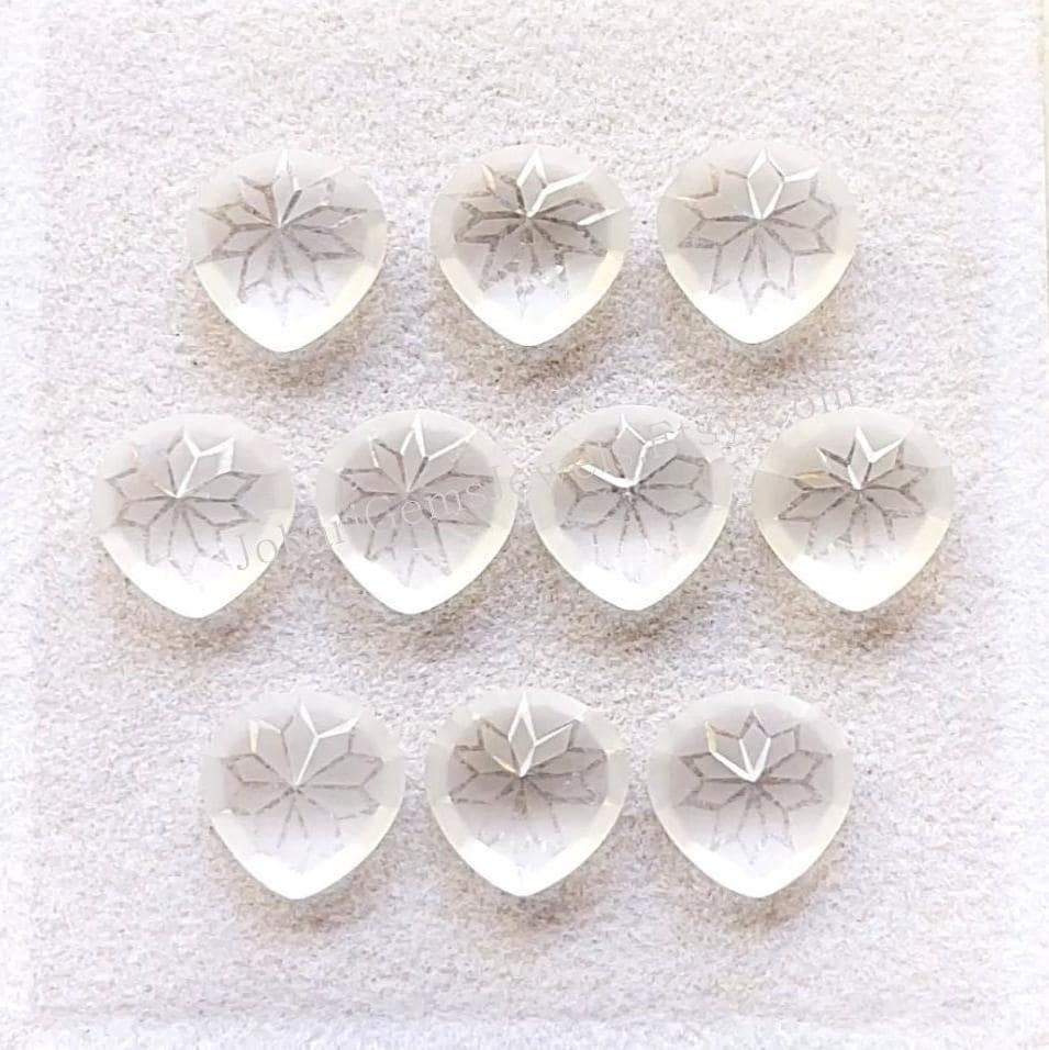 NATURAL Clear Quartz Precision Hand Cut And Carved Heart Shape Gemstone 10 Pieces Lot, AAA+ Natural Clear Quartz With Flat Back For Handmade Jewelry