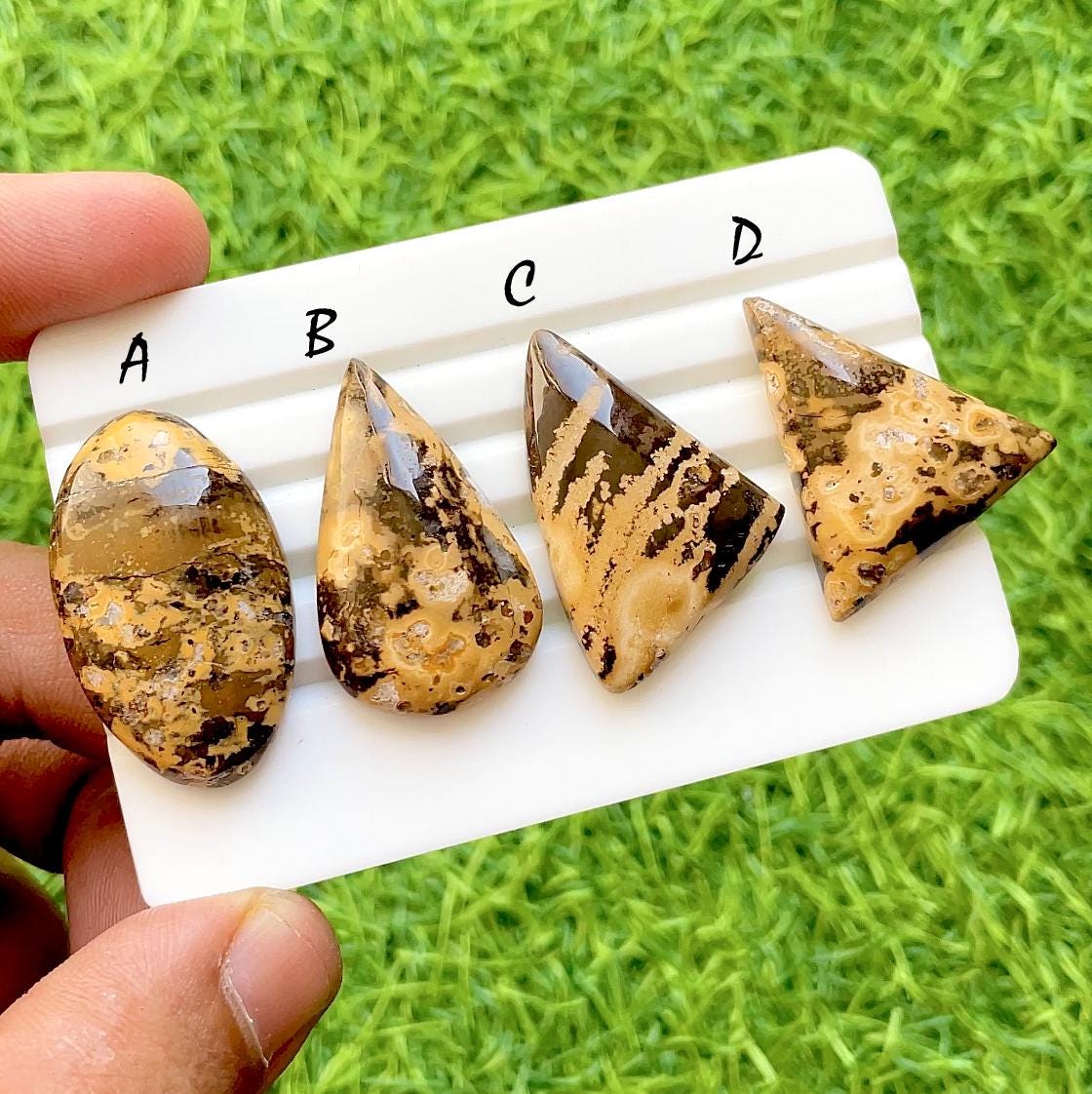 Desert Dune Picture Jasper Cabochon Set – Natural Earth Tone Jasper Matching Stones, Oval Teardrop Triangle Cabs, Designer Jewelry Making Gemstone Lot