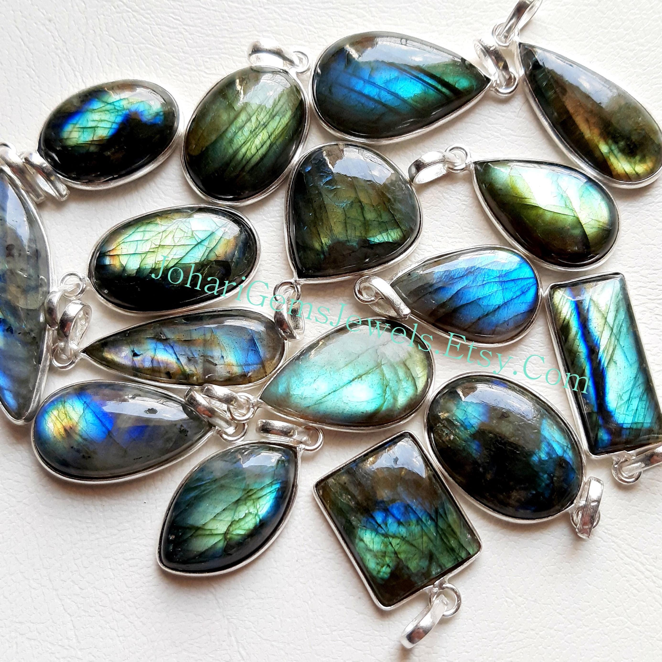 Natural Labradorite Gemstone Cabochon Pendants, 925 Silver Plated Pendant Necklace With Different Size And Shape, Wholesale Lot, Handmade Pendant