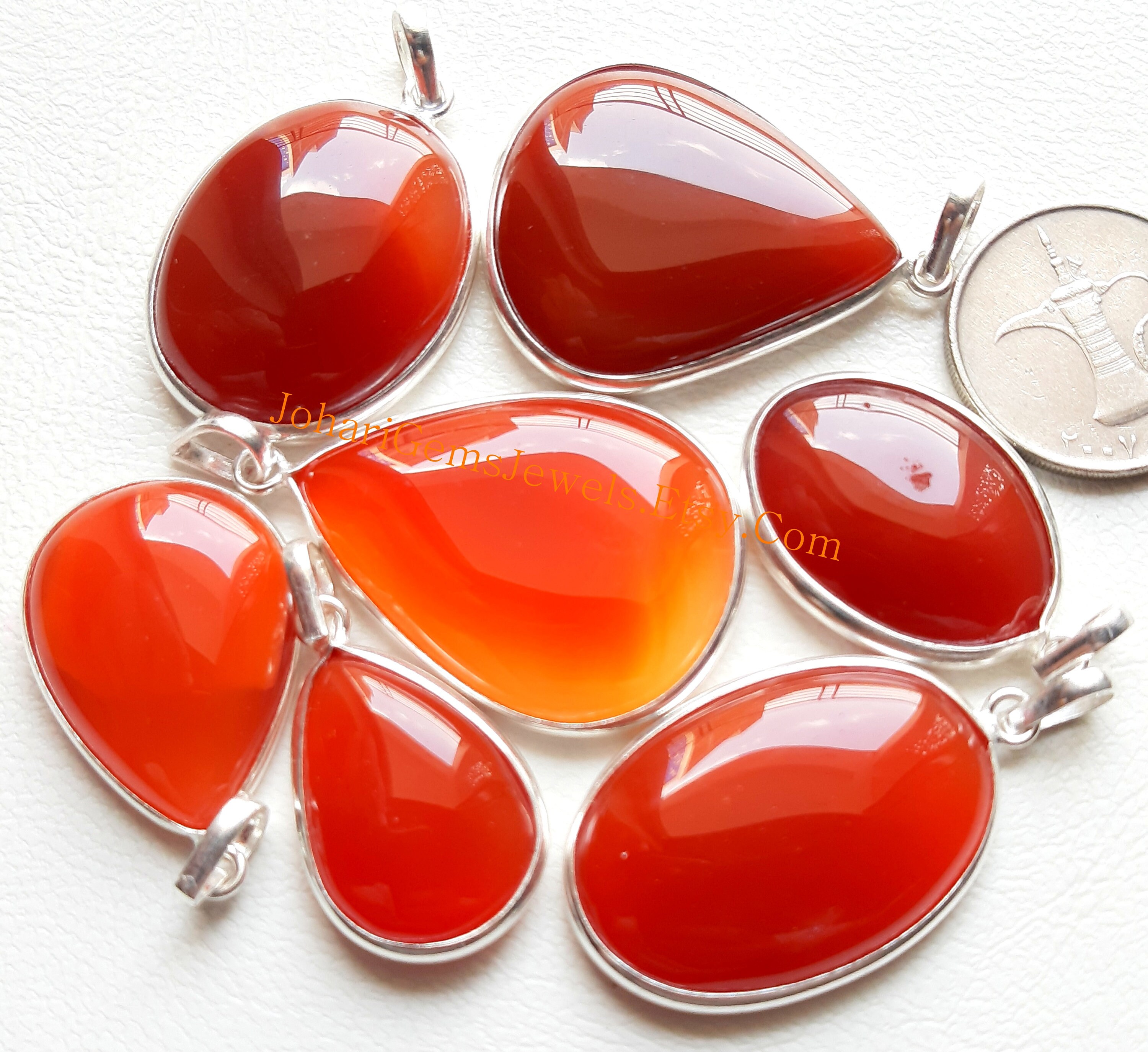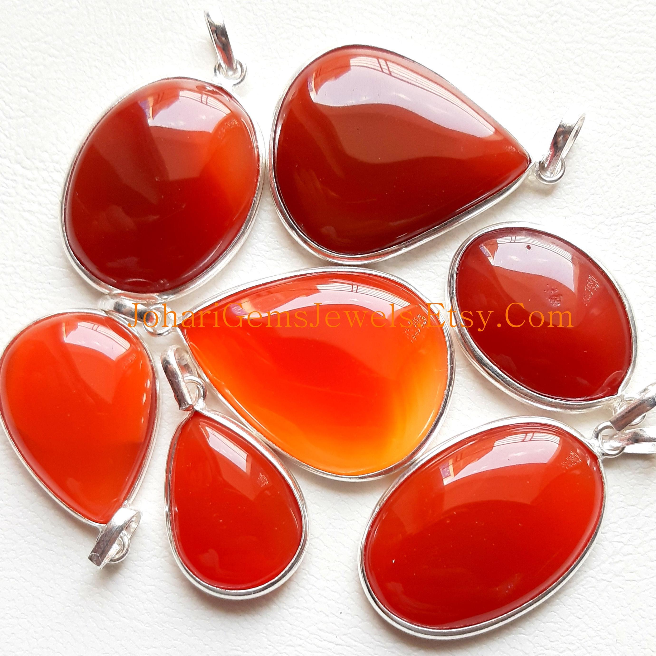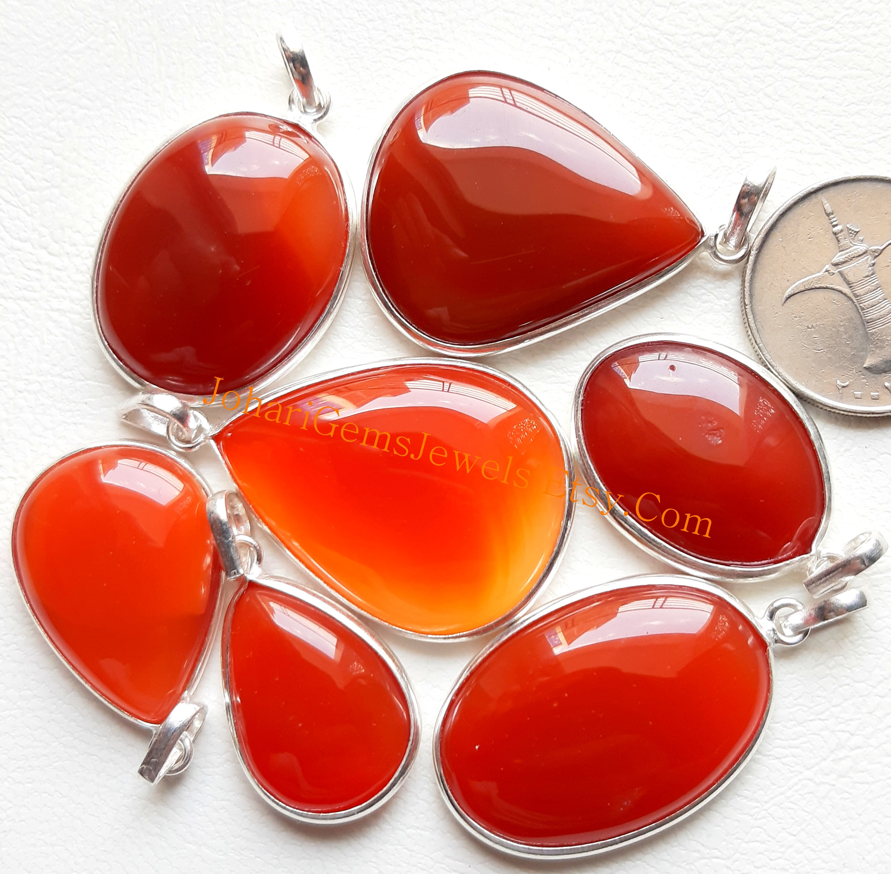 Carnelian Gemstone Cabochon Pendants, 925 Silver Plated Pendant Necklace With Different Size And Shape, Wholesale Lot, Handmade Pendant
