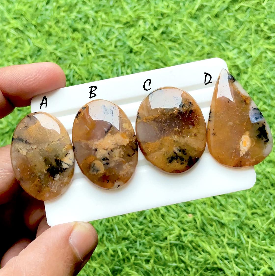 Autumn Mist Dendritic Agate Cabochons For Wire Wrap, Natural Landscape Agate Cabochons For Jewelry Making, Earth Tone Gemstones