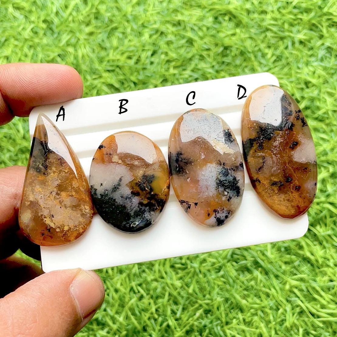 Autumn Mist Dendritic Agate Cabochons For Wire Wrap, Natural Landscape Agate Cabochons For Jewelry Making, Earth Tone Gemstones
