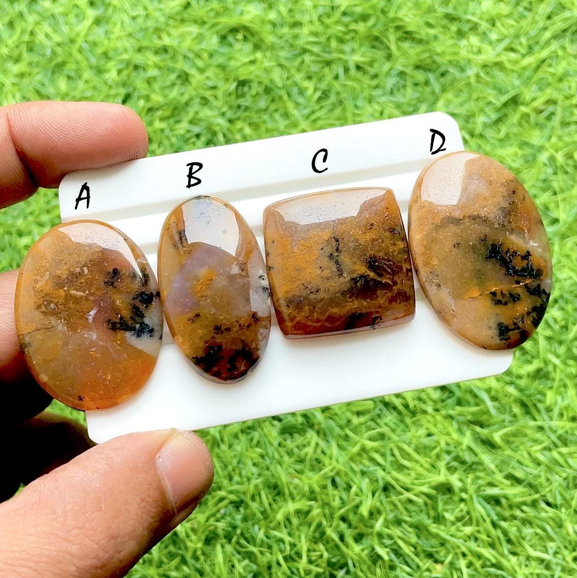 Autumn Mist Dendritic Agate Cabochons For Wire Wrap, Natural Landscape Agate Cabochons For Jewelry Making, Earth Tone Gemstones