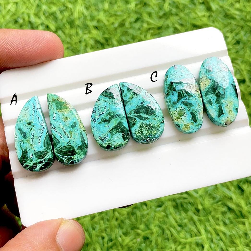 Chrysocolla Malachite Pair Cabochon Loose Gemstone For Jewelry Making, AAA+ Natural Chrysocolla Malachite Pair For Wire Wrap