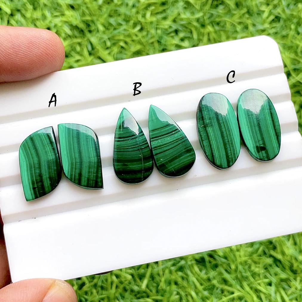 MALACHITE Pair Cabochon Loose Gemstone, Natural AAA+ Malachite Pair Cabochon For Handmade Jewelry