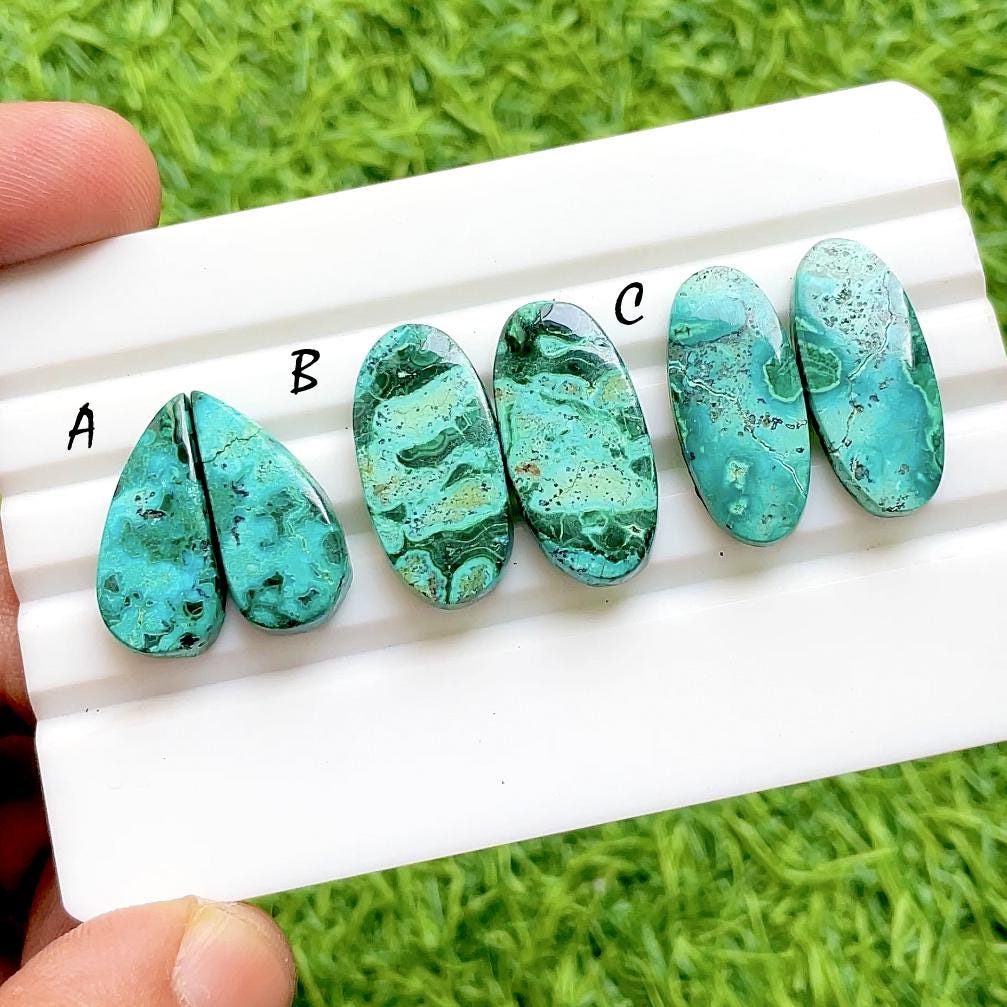Chrysocolla Malachite Pair Cabochon Loose Gemstone For Jewelry Making, AAA+ Natural Chrysocolla Malachite Pair For Wire Wrap