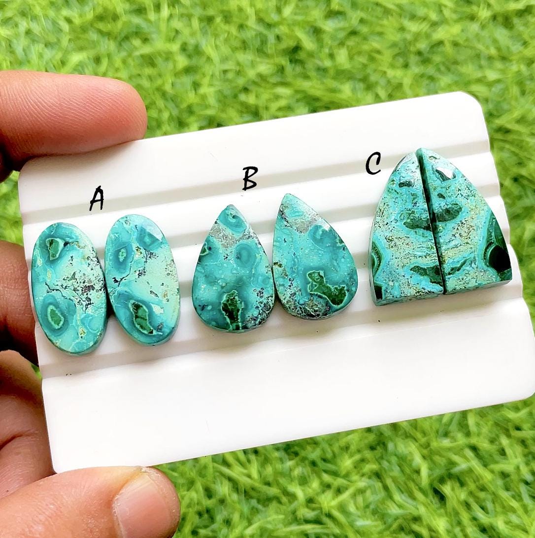 Chrysocolla Malachite Pair Cabochon Loose Gemstone For Jewelry Making, AAA+ Natural Chrysocolla Malachite Pair For Wire Wrap