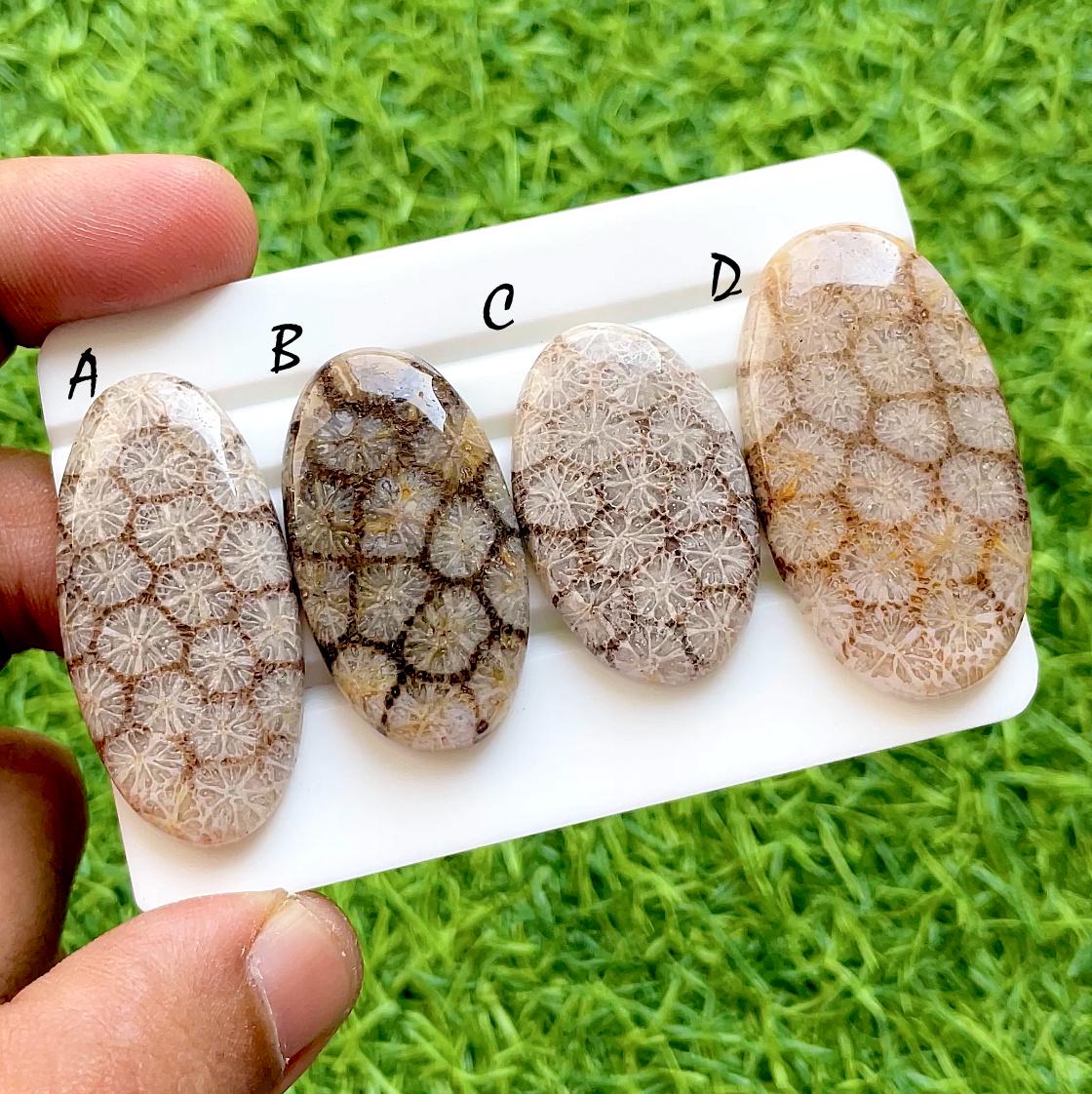 Desert Matrix Fossil Coral Loose Cabochon For Wire Wrap, AAA+ Natural Geometric Flower Grid Gemstone For Jewelry Makings
