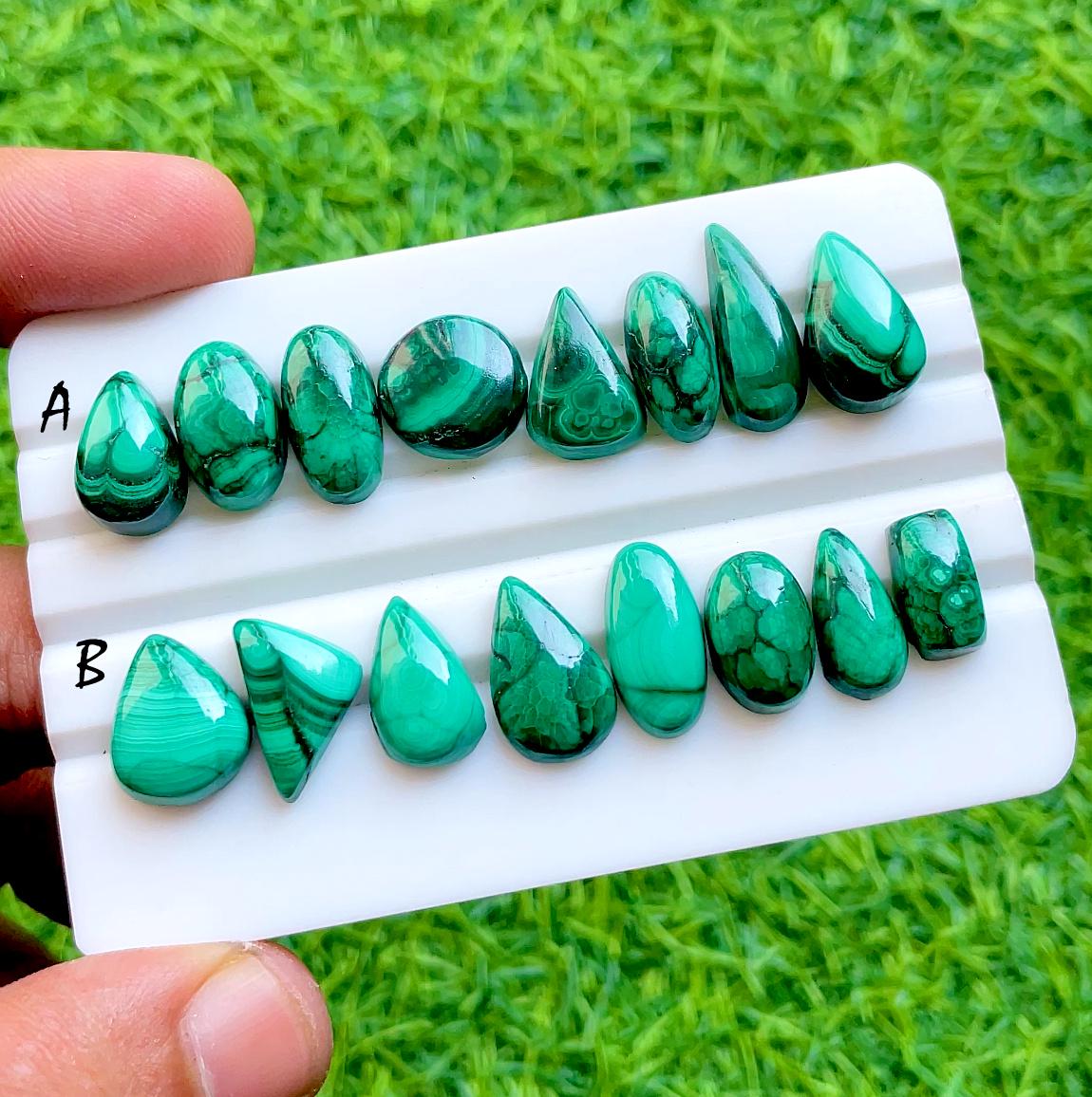 Royal Emerald Matrix Collection, Natural Malachite Cabochon Set, High Polish Green Swirl Teardrop & Oval Loose Gemstones for Designer Jewelry