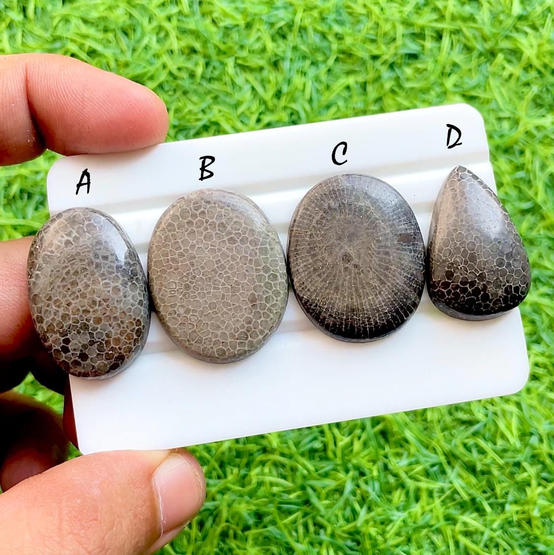 Ancient Ocean Fossil Coral Cabochon Set – Natural Coral Gemstone Oval & Teardrop Mix, Earthy Brown Prehistoric Pattern Stones for Jewelry Making