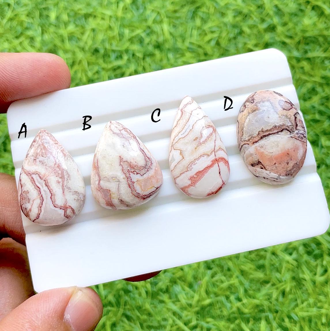 Blush Vein Rosetta Jasper Cabochon For Wire Wrap, AAA+ Natural Pink Line Stone Pear & Oval Cabochons for Jewelry Making