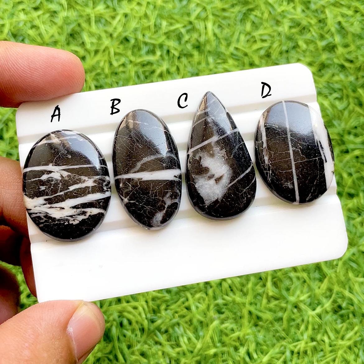 Obsidian Vein Eclipse Cabochon For Wire Wrap, Black & White Zebra Jasper Pear and Oval Natural Stone for Jewelry Making