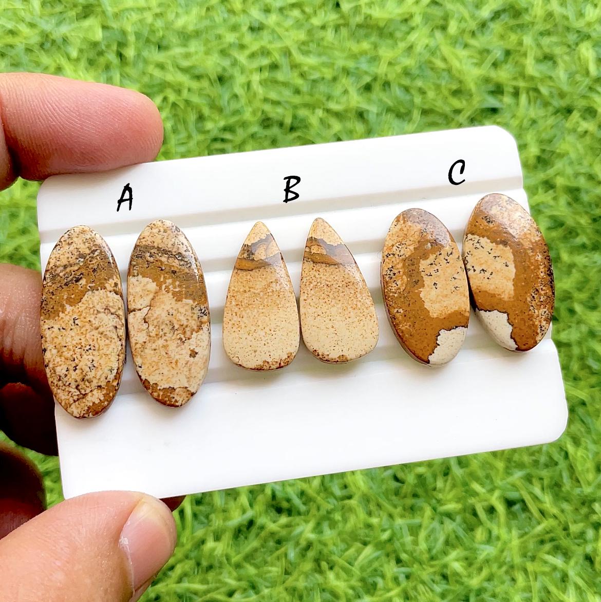 Natural Picture Jasper Pair Cabochon for Jewelry Making, Natural Picture Jasper Pair Cabochon For Handmade Pendant, Necklace and Handmade Jewelry