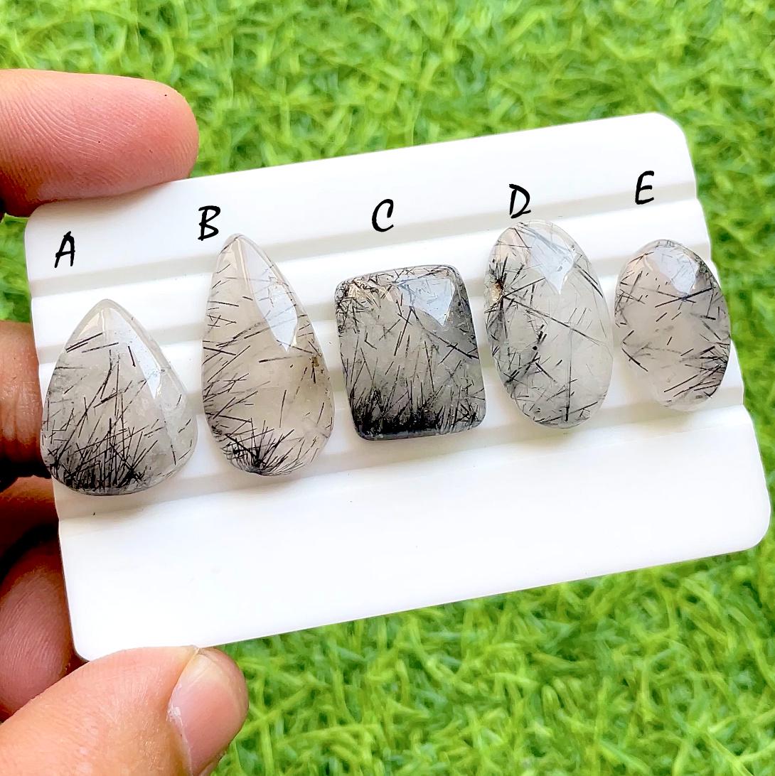Midnight Needle Rutilated Quartz Cabochon For Wire Wrap, Natural Black Tourmalinated Quartz Pear & Fancy Shape Loose Gemstones