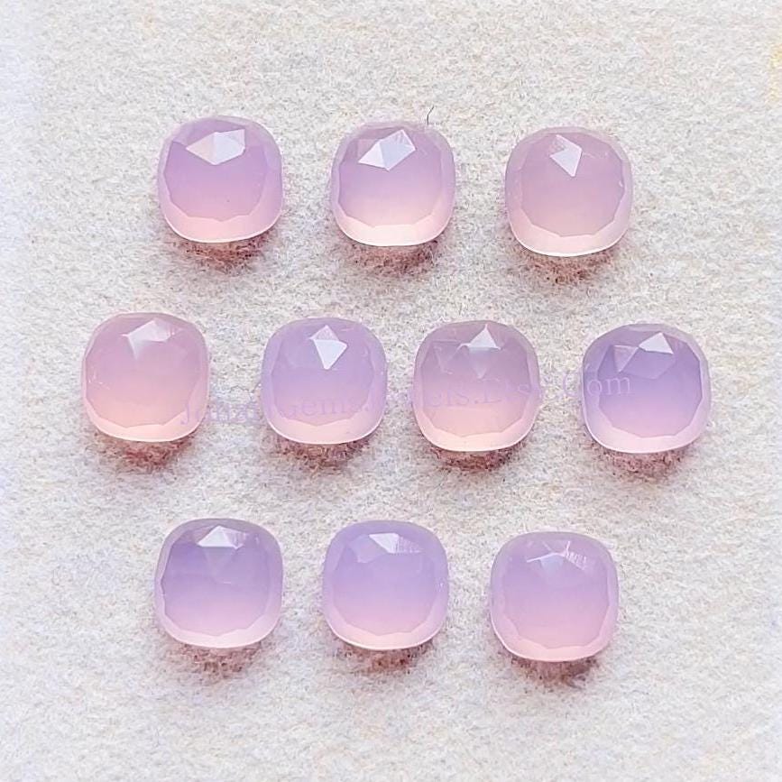 Lavender Color Chalcedony 8 MM Rose Cut Cushion Shape Gemstone 10 Pieces Lot, AAA+ Natural Chalcedony With Flat Back For Jewelry Making