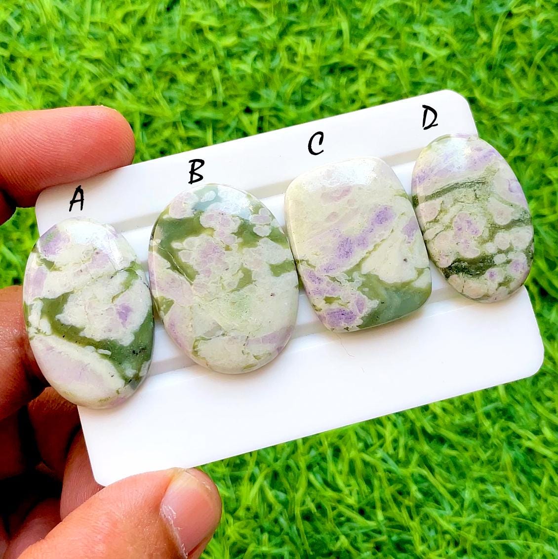 Spring Garden Harmony Natural Variscite Cabochon For Wire Wrap, Green & Lilac Pattern Loose Gemstones for Statement Jewelry