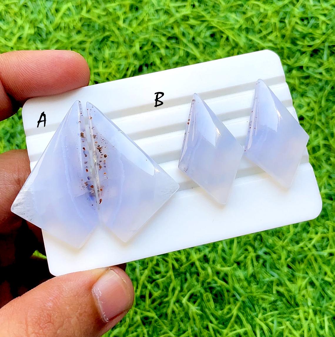 NEW Blue Lace Agate Pair Cabochon Loose Gemstone For Jewelry Making, AAA+ Natural Blue Lace Agate Matching Pair For Earrings