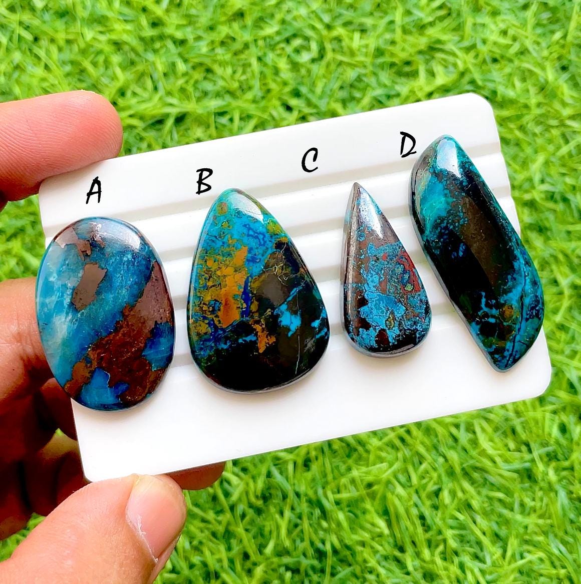 Deep Sea Azurite Chrysocolla Cabochons For Wire Wrap, Teal Blue & Copper Matrix Natural Gemstone Set For Artisan Jewelry Design