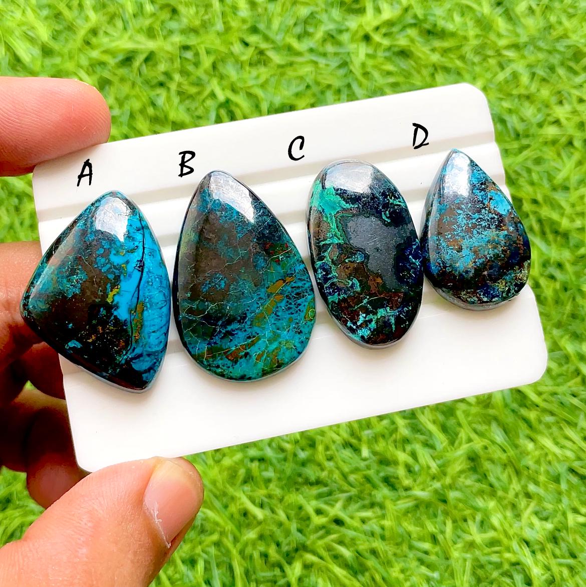 Deep Sea Azurite Chrysocolla Cabochons For Wire Wrap, Teal Blue & Copper Matrix Natural Gemstone Set For Artisan Jewelry Design