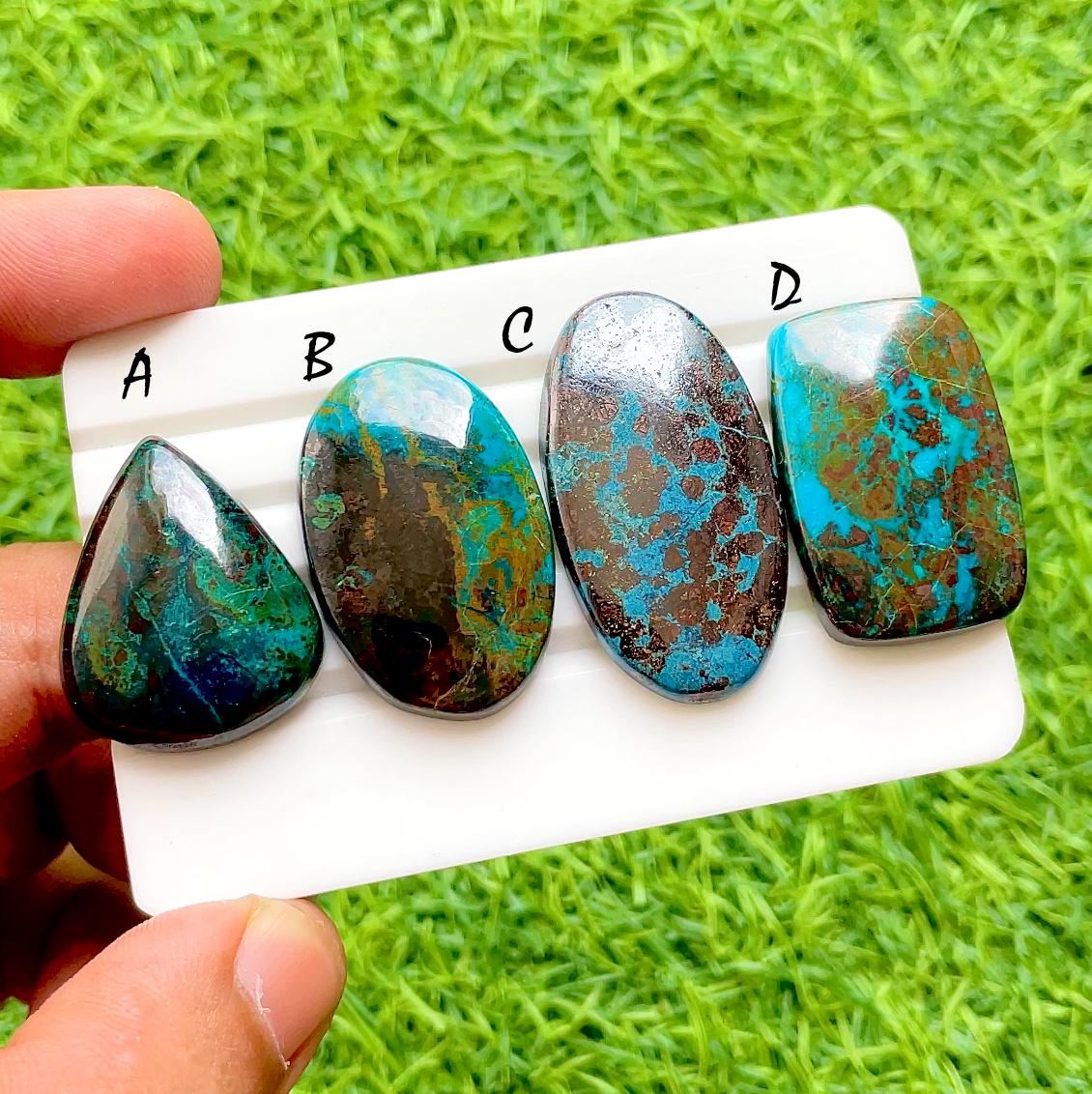 Deep Sea Azurite Chrysocolla Cabochons For Wire Wrap, Teal Blue & Copper Matrix Natural Gemstone Set For Artisan Jewelry Design