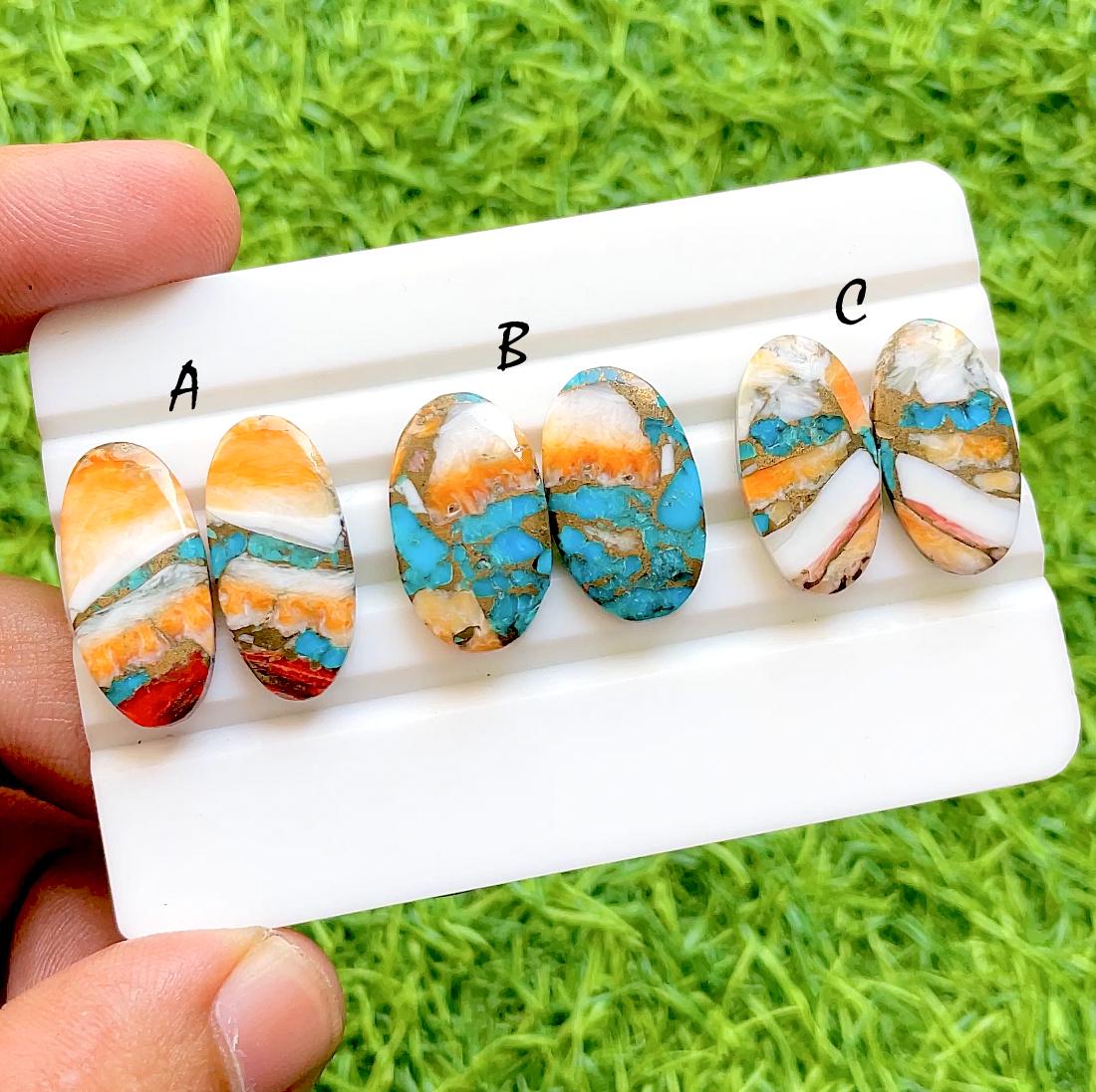 NEW Oyster Copper Turquoise Pair Cabochon Loose Gemstone For Jewelry Making, AAA+ Oyster Copper Turquoise Matching Pair For Earring