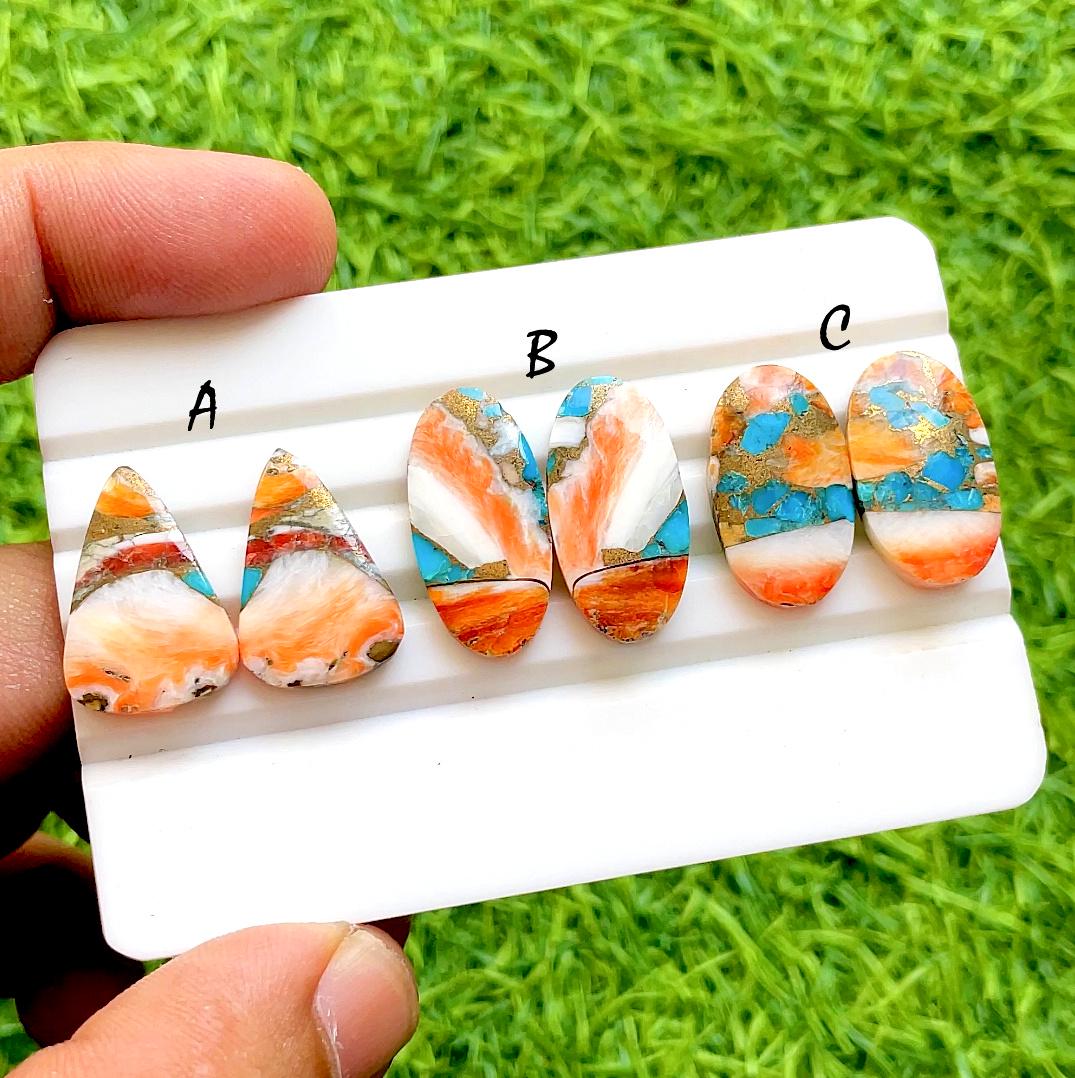 NEW Oyster Copper Turquoise Pair Cabochon Loose Gemstone For Jewelry Making, AAA+ Oyster Copper Turquoise Matching Pair For Earring