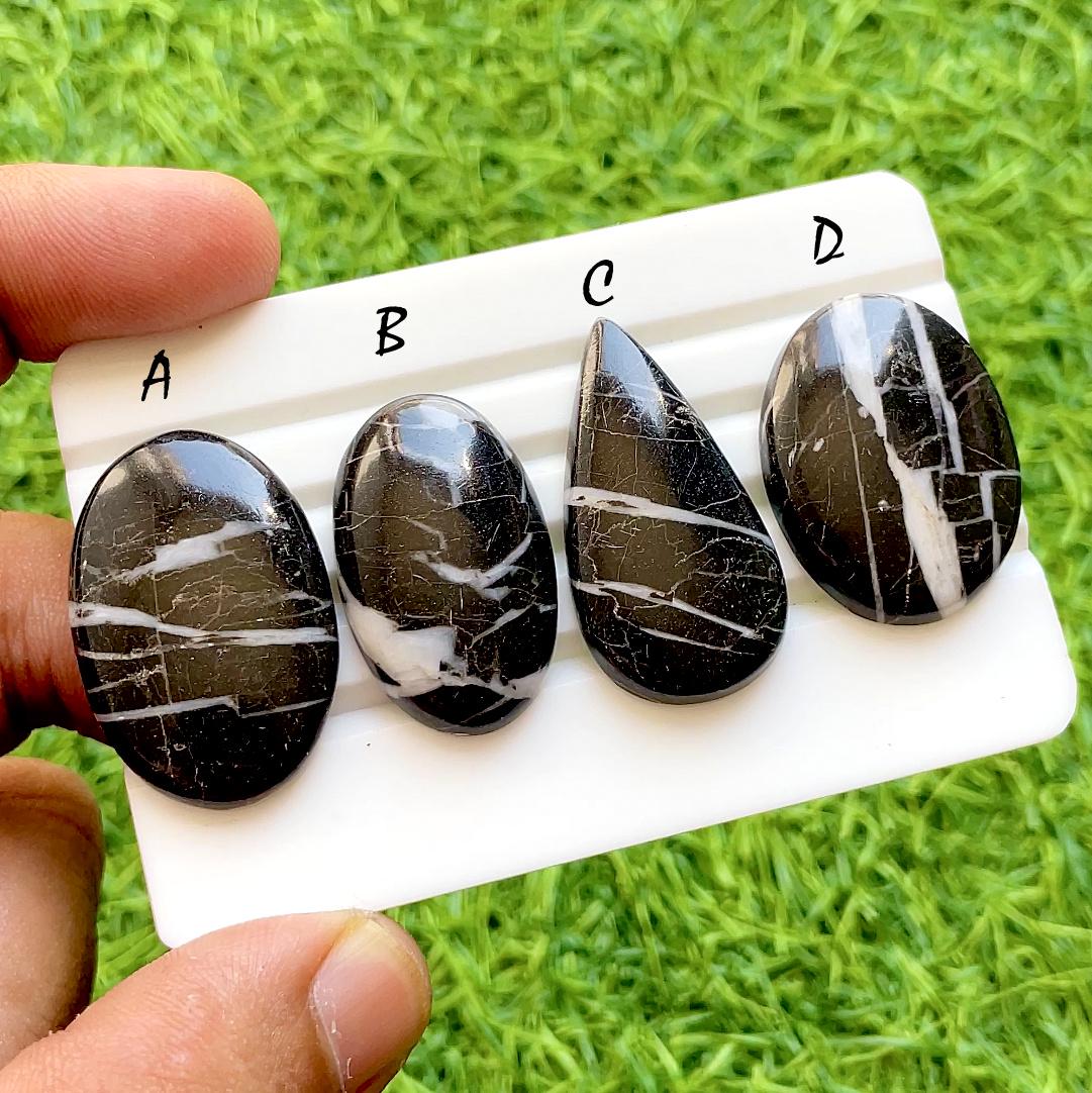 Obsidian Vein Eclipse Cabochon For Wire Wrap, Black & White Zebra Jasper Pear and Oval Natural Stone for Jewelry Making