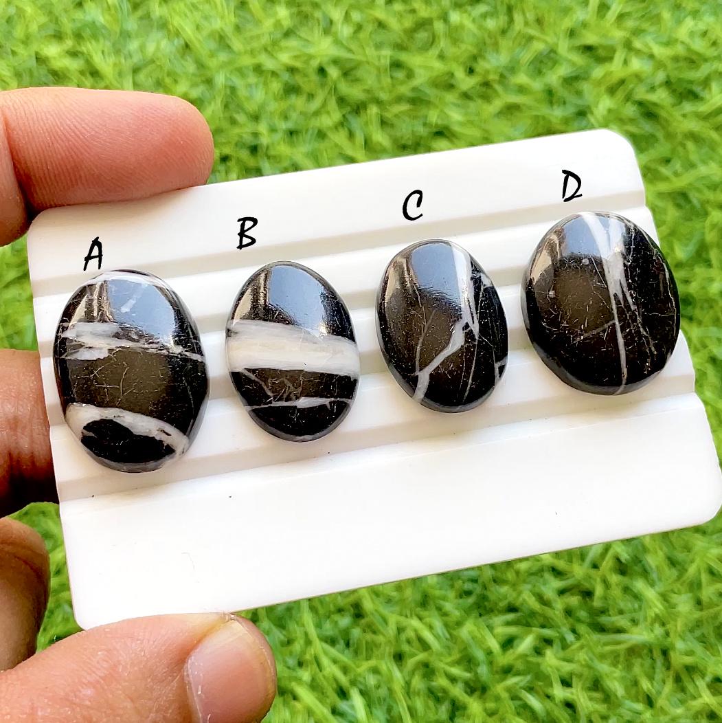Obsidian Vein Eclipse Cabochon For Wire Wrap, Black & White Zebra Jasper Pear and Oval Natural Stone for Jewelry Making
