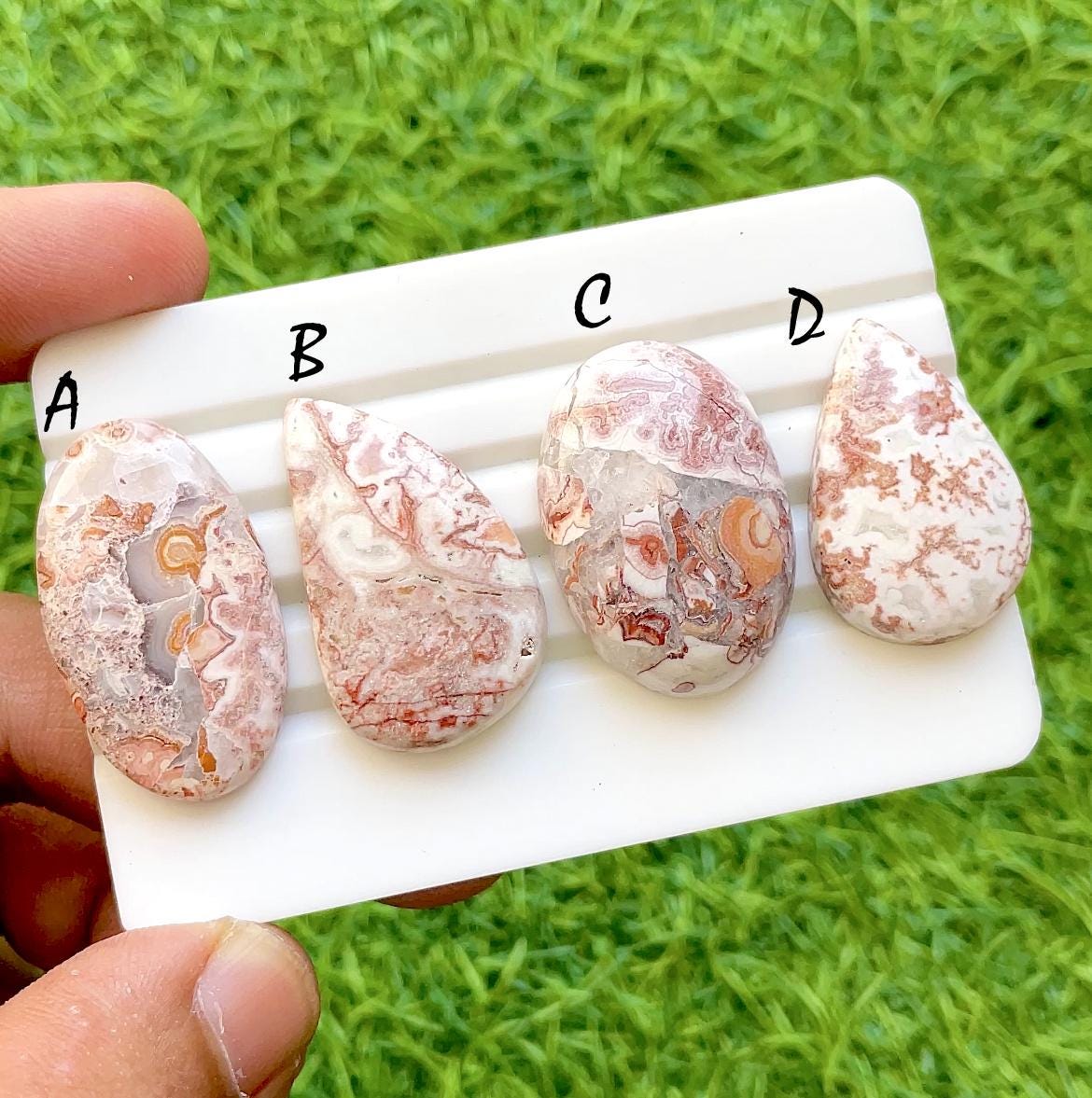 Blush Vein Rosetta Jasper Cabochon For Wire Wrap, AAA+ Natural Pink Line Stone Pear & Oval Cabochons for Jewelry Making - 36431-36434