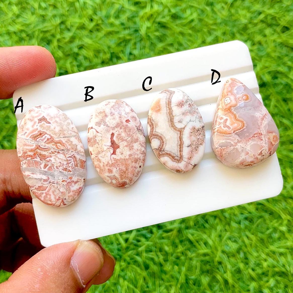 Blush Vein Rosetta Jasper Cabochon For Wire Wrap, AAA+ Natural Pink Line Stone Pear & Oval Cabochons for Jewelry Making