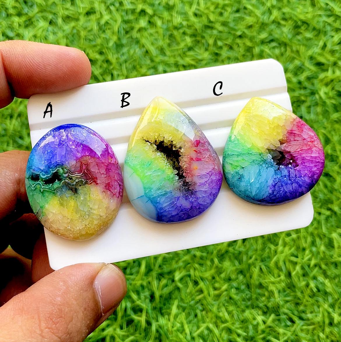 Rainbow Aura Druzy Agate Cabochon For Wire Wrap, Colorful Crystal Geode Gemstone, Titanium Druzy Cabochons for Jewelry Making