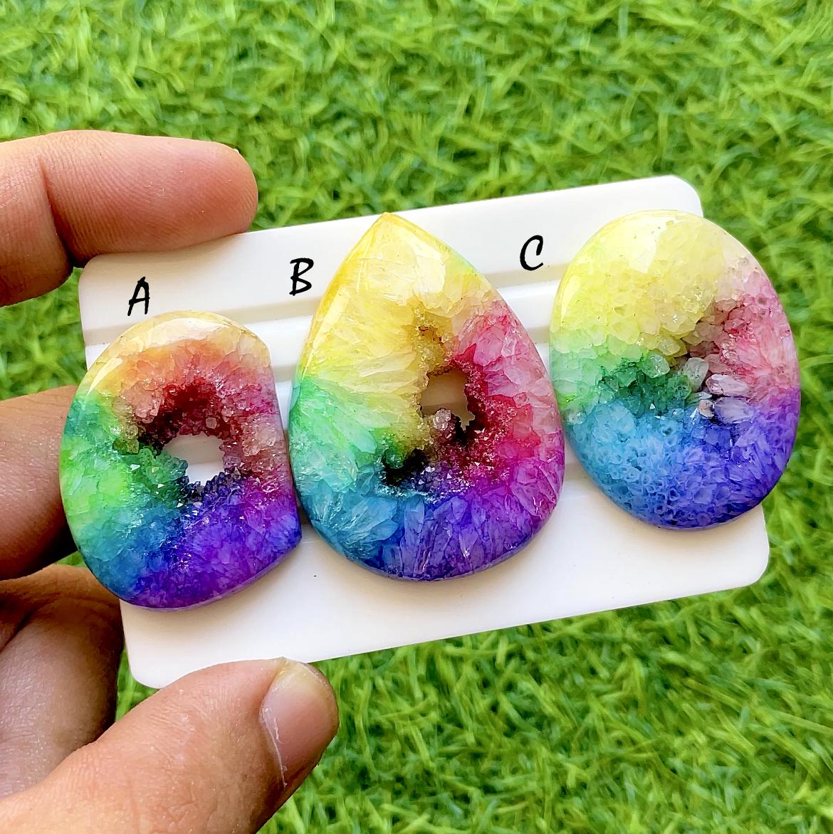 Rainbow Aura Druzy Agate Cabochon For Wire Wrap, Colorful Crystal Geode Gemstone, Titanium Druzy Cabochons for Jewelry Making - 36470-36472
