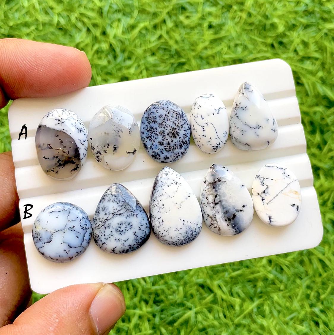 Snow Fern Opal Cabochon For Wire Wrap, Natural Dendritic Opal Loose Gemstones, White Dendrite Opal Cabs For Jewelry Making