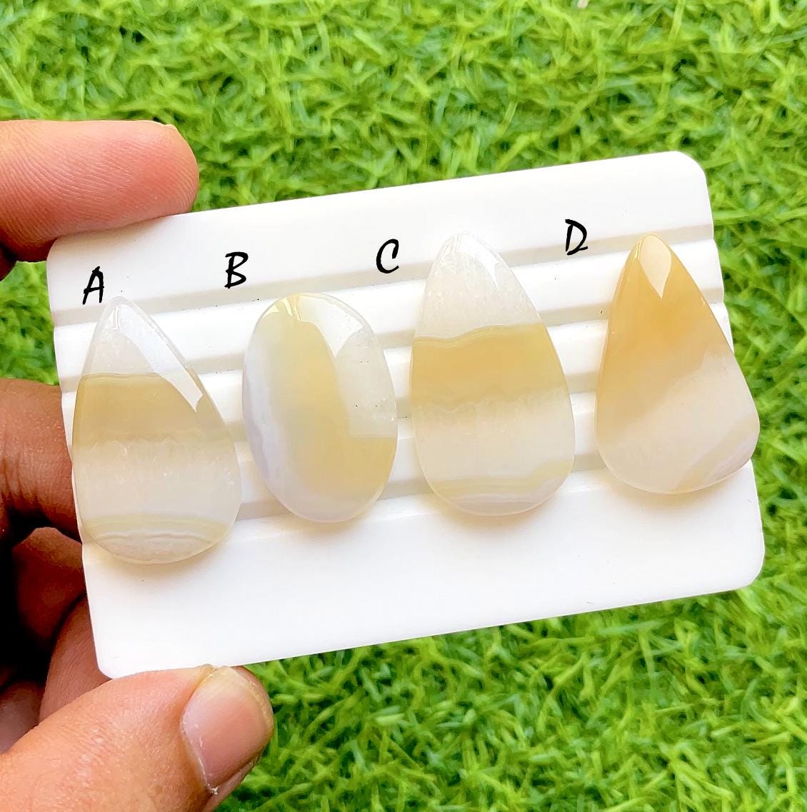 Golden Honey Banded Agate Cabochon For Wire Wrap, Natural Cream Agate Loose Gemstones, Designer Agate Cabs for Jewelry Making