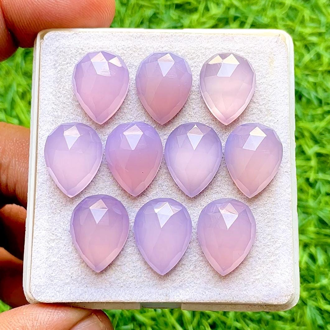 Lavender Color Chalcedony 12x16 MM Pear Shape Rose Cut Loose Gemstone 6 Pieces Lot, AAA+ Natural Chalcedony Flat Back For Jewelry Making