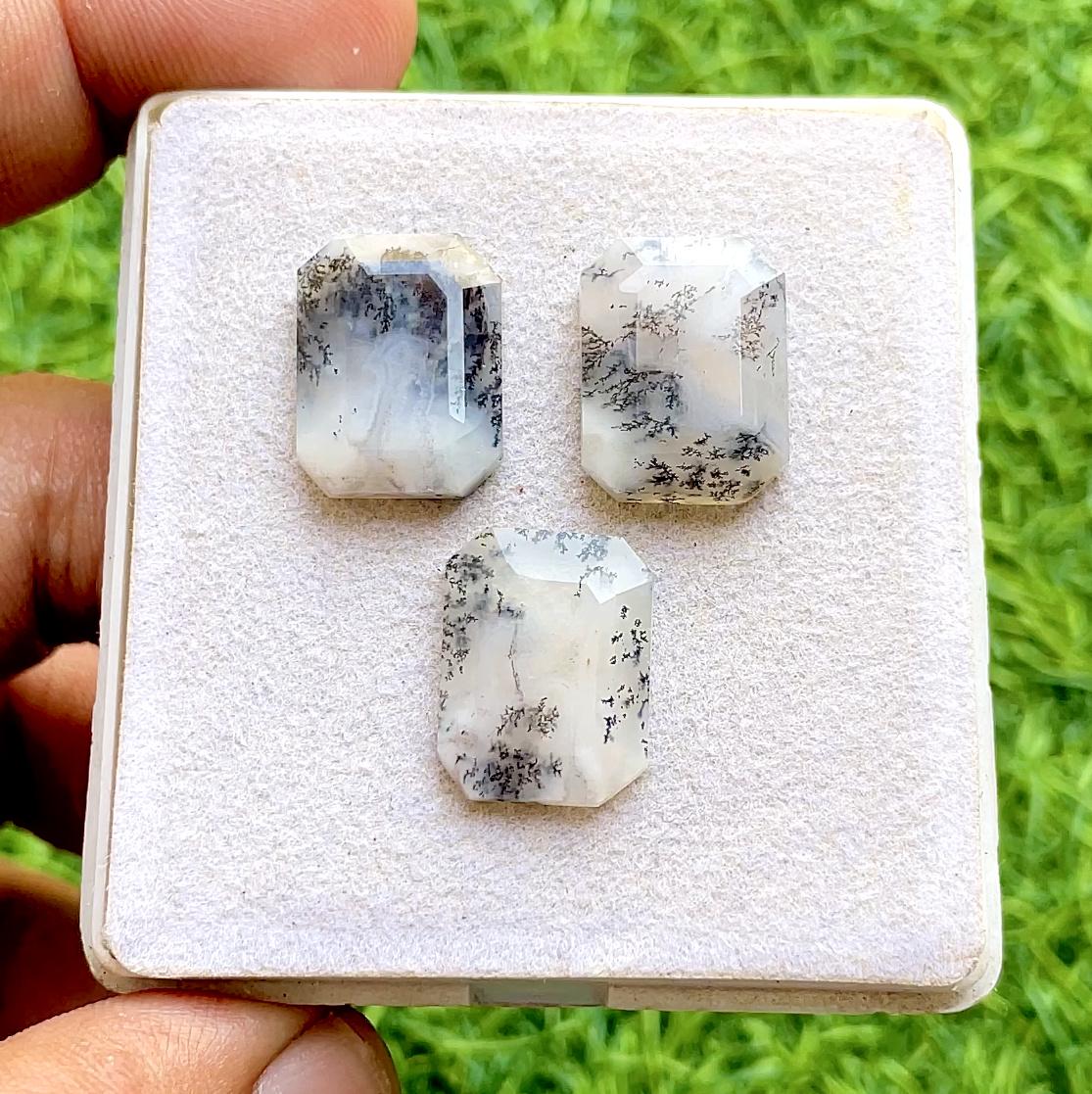 Dendritic Opal 13x17 MM Rectangle Shape Step Cut Loose Gemstone 3 Pieces Lot, AAA+ Natural Dendritic Opal Flat Back Gemstone Lot For Jewelry