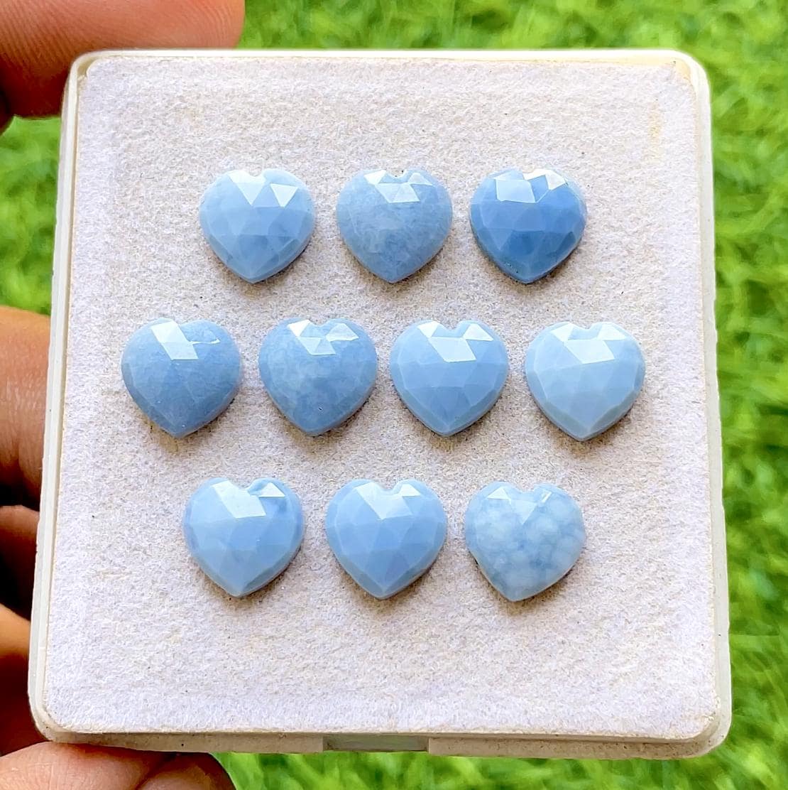 Blue Opal 10 MM Heart Shape Rose Cut Loose Gemstone 10 Pieces Lot For Jewelry, AAA+ Natural Blue Opal With Flat Back For Jewelry Making