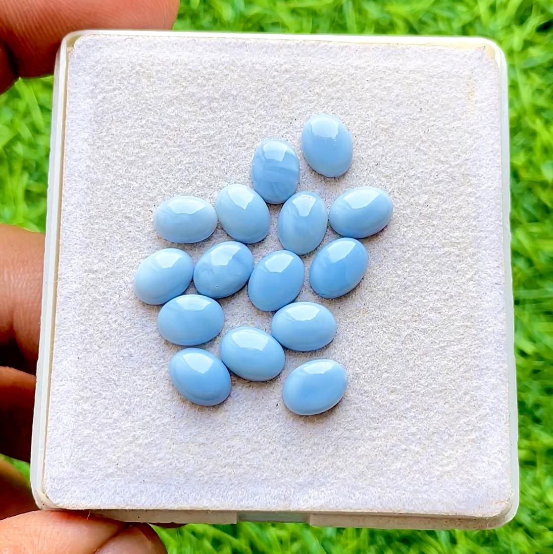 Blue Opal 6x8 MM Oval Shape Smooth Cabochon Loose Gemstone 15 Pieces Lot For Jewelry Making, AAA+ Natural Blue Opal With Flat Back Lot