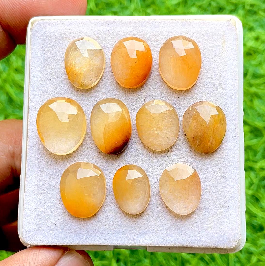 Golden Rutile Quartz Rosecut Free Form Gemstone Slice 10 Pieces Lot, AAA+ Natural Golden Rutile Gemstone Flat Back Used For Jewelry Making