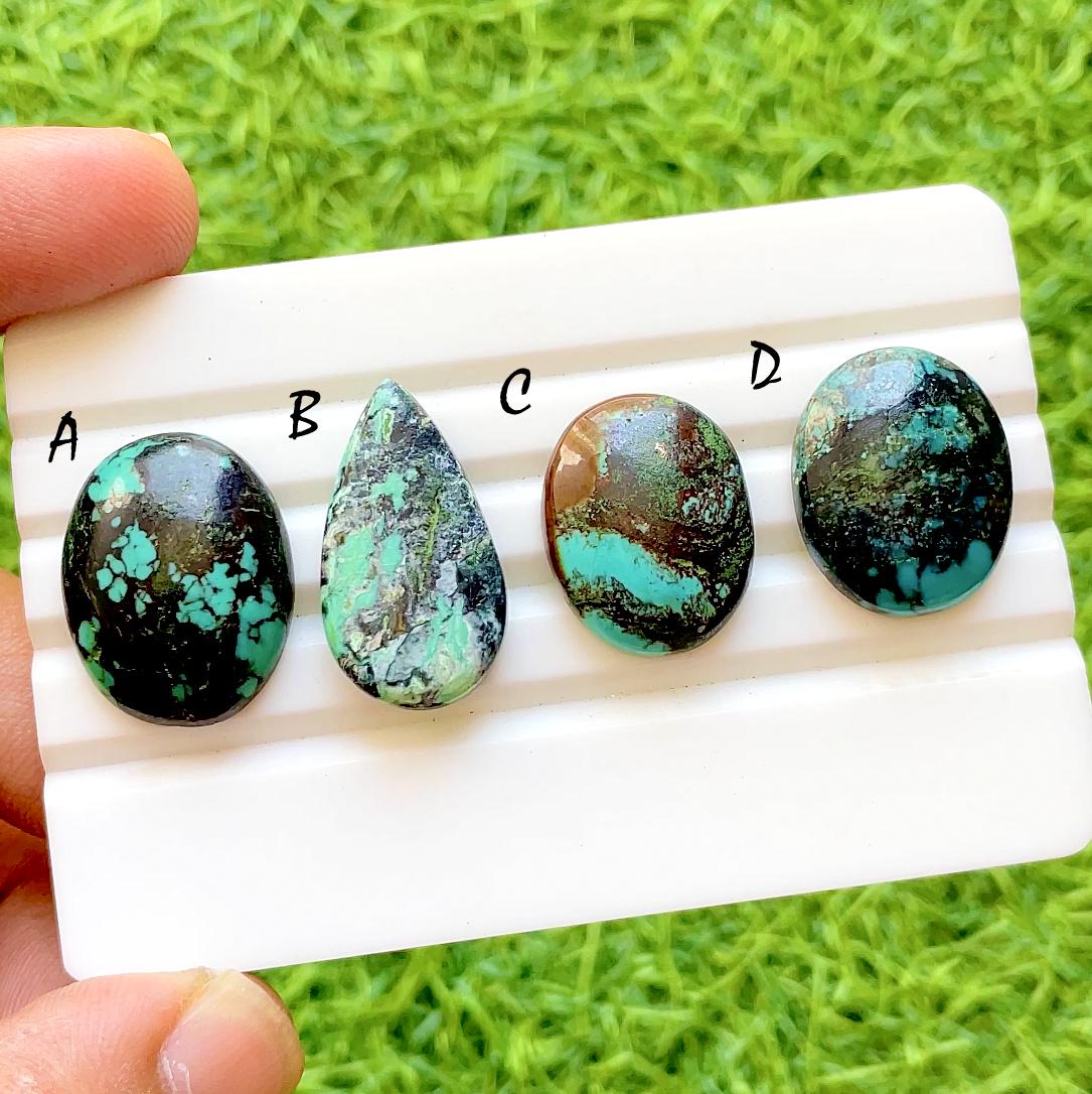 Earth Vein Tibetan Turquoise Cabochon For Wire Wrap, Natural Turquoise Loose Stone, Rustic Matrix Turquoise for Jewelry Making - 36661-36664