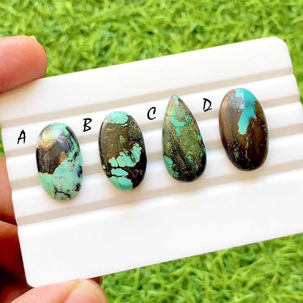 Earth Vein Tibetan Turquoise Cabochon For Wire Wrap, Natural Turquoise Loose Stone, Rustic Matrix Turquoise for Jewelry Making