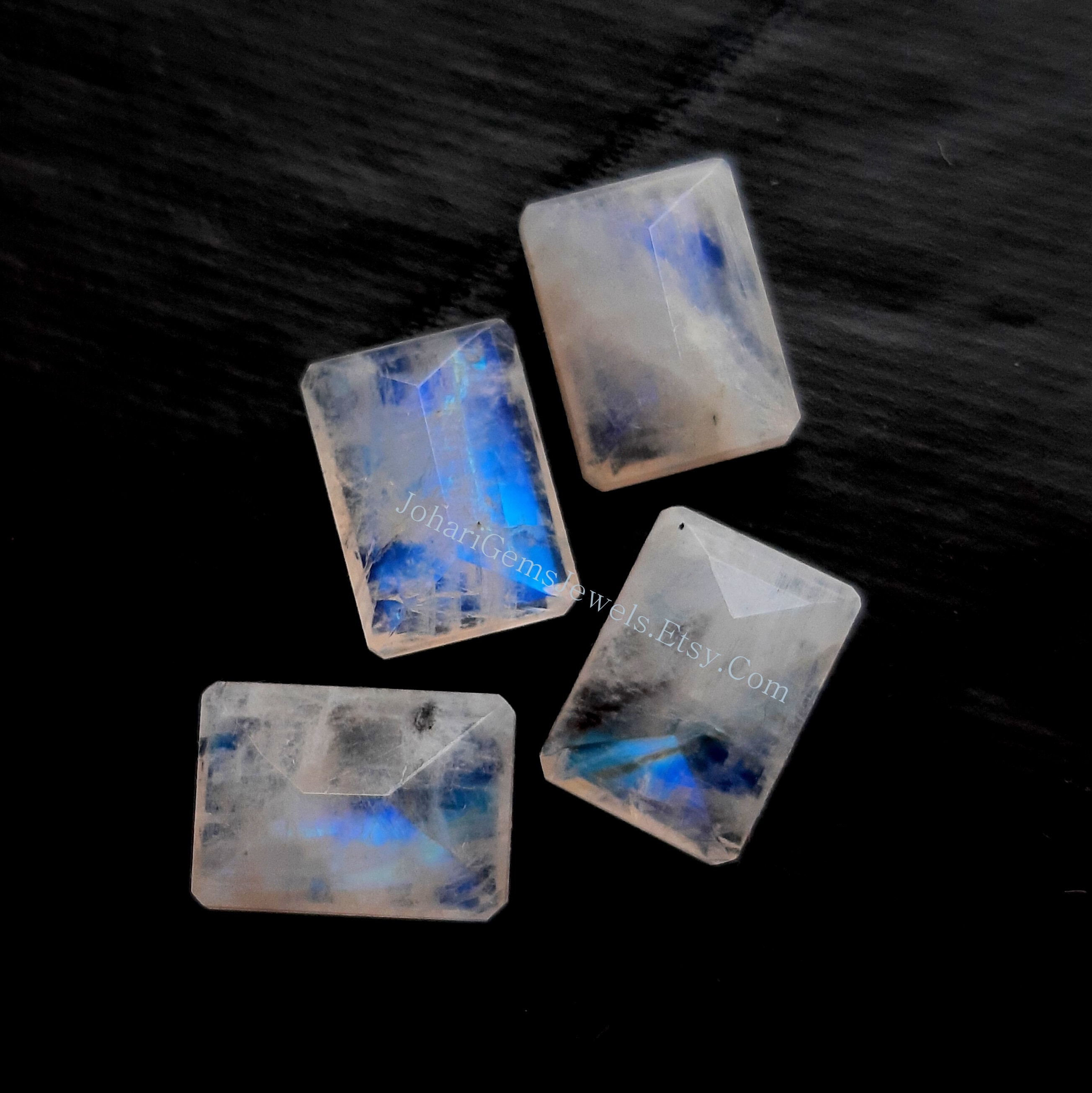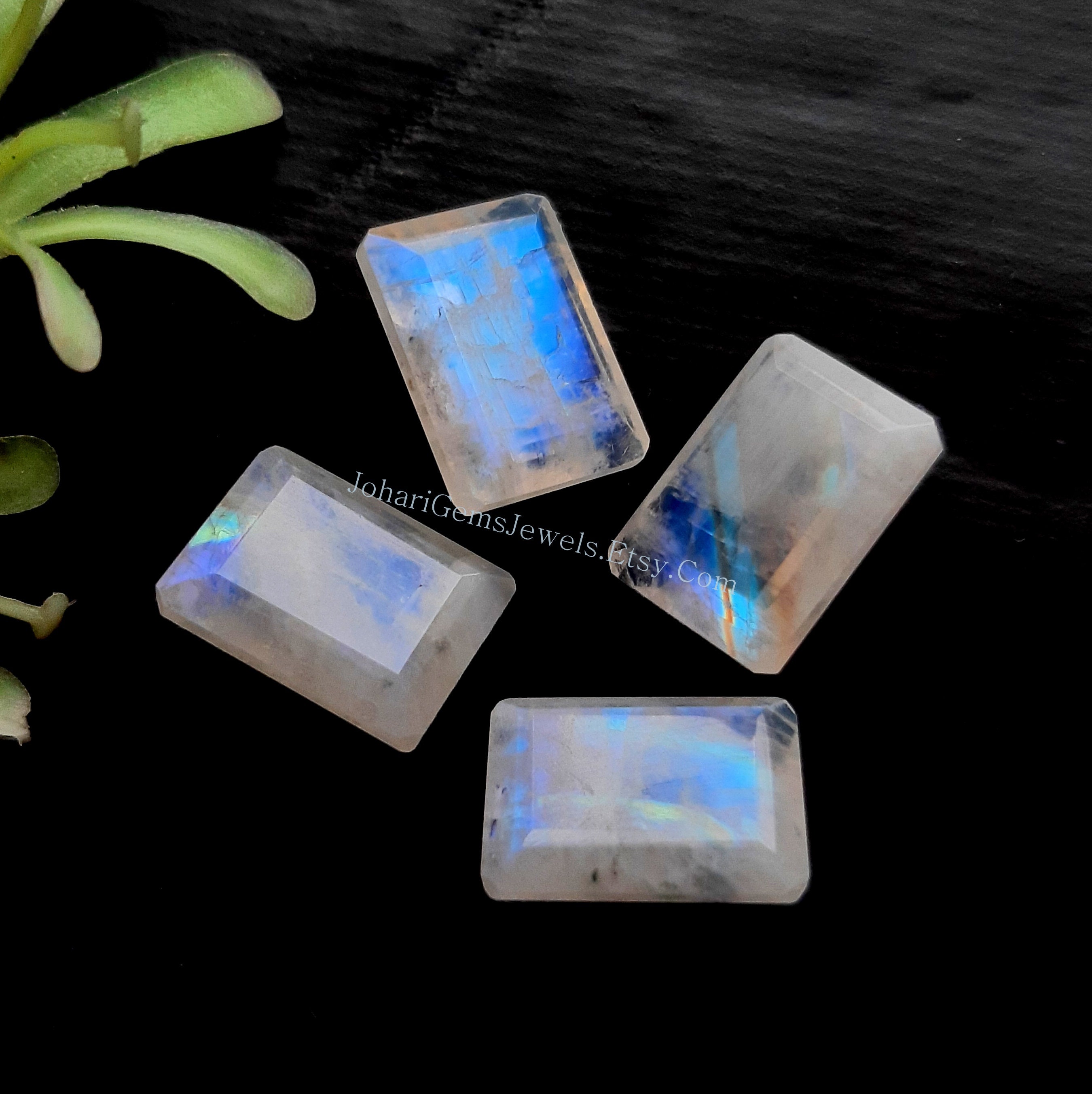 Rainbow Moonstone Step Cut 10X14 MM Gemstone 4 Pieces Lot | AAA+ Natural Rainbow Moonstone Step Cut With Point Back For Jewelry Making
