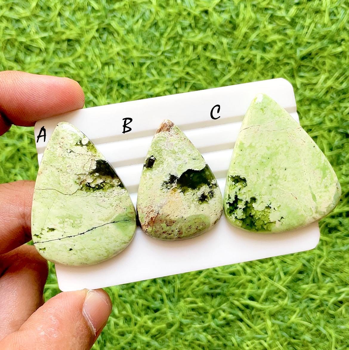 Forest Vein Chrome Chalcedony Cabochon For Wire Wrap, Natural Green Pattern Chalcedony Gemstone Lot For Jewelry Making - 36817-36819