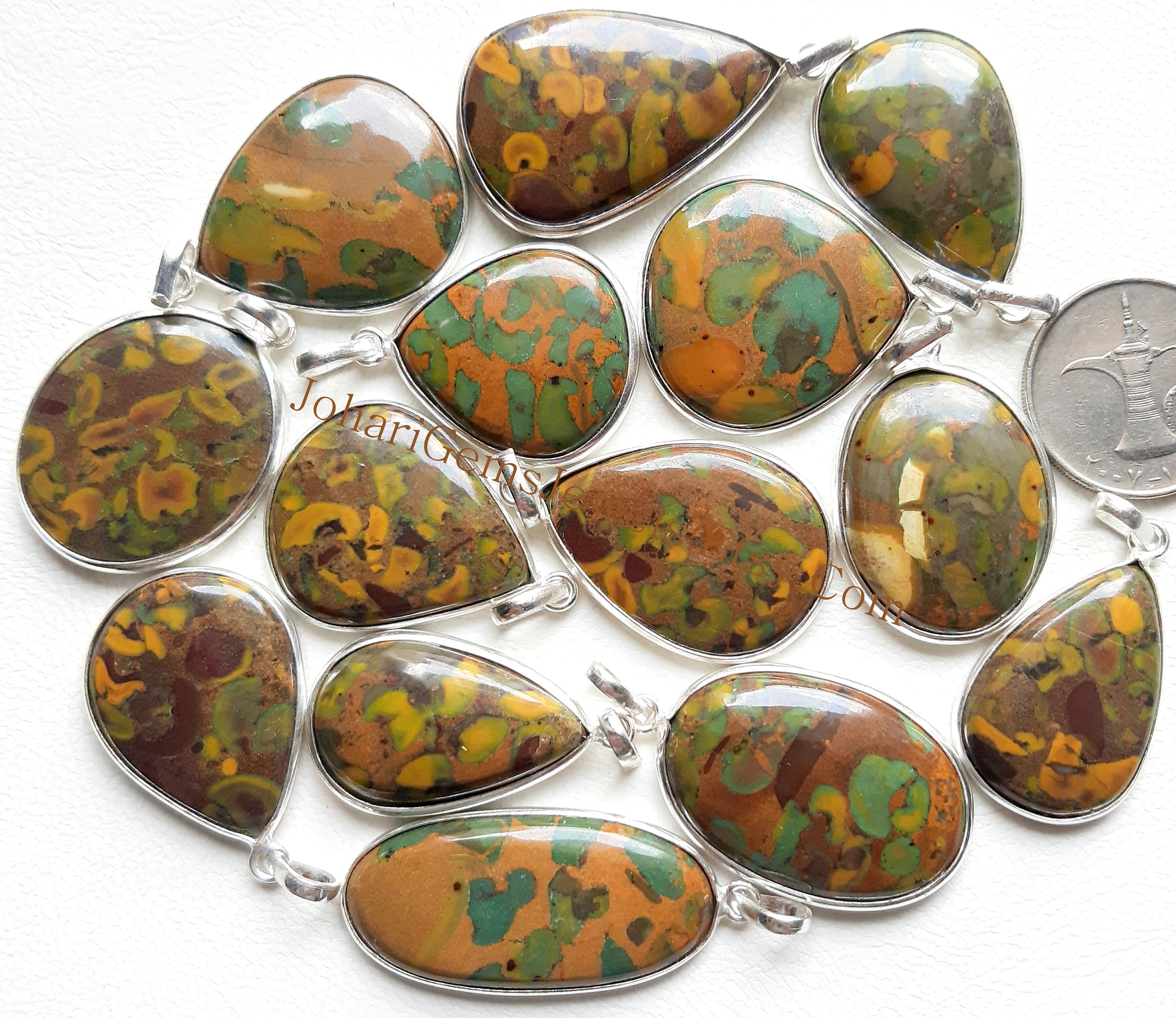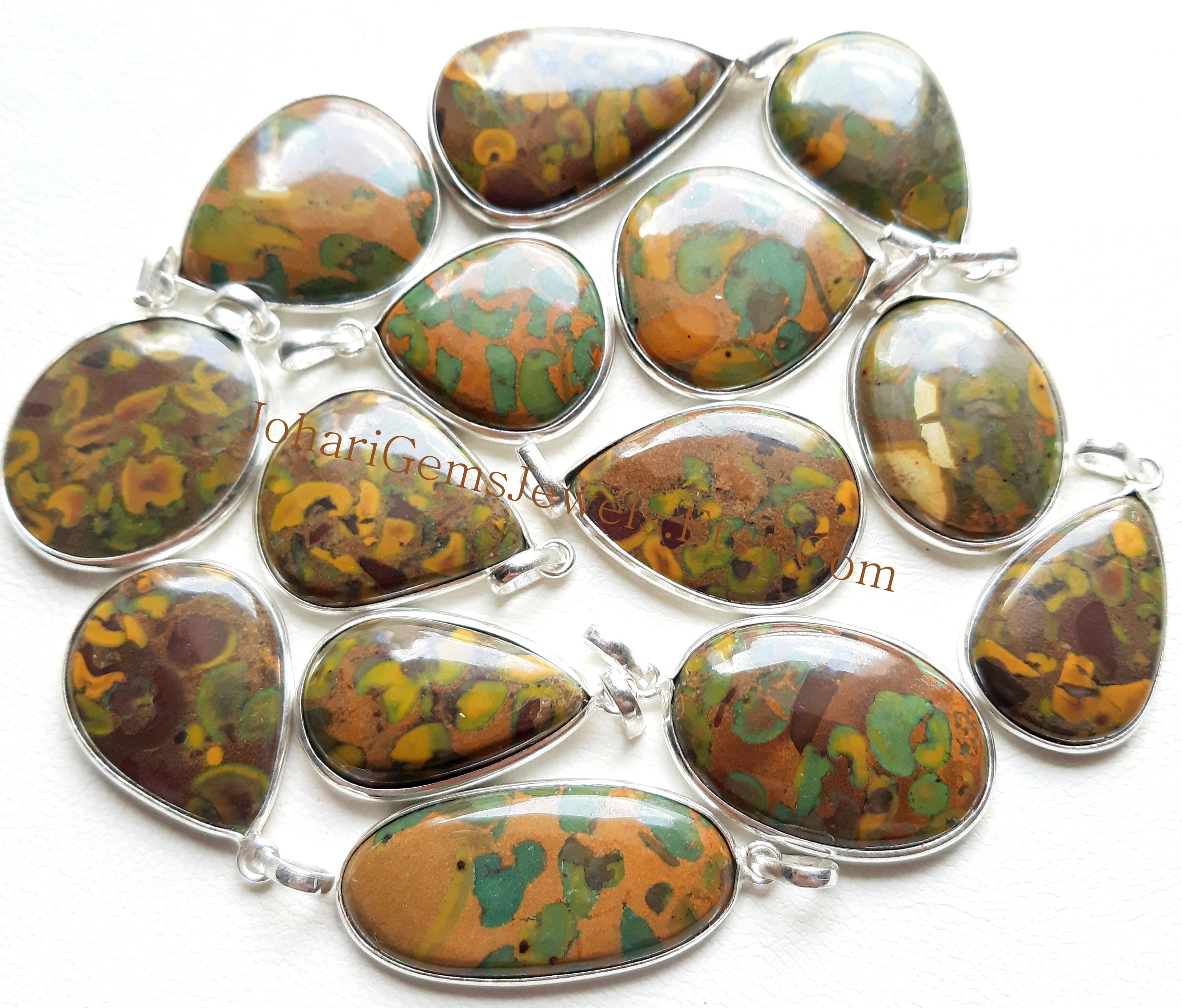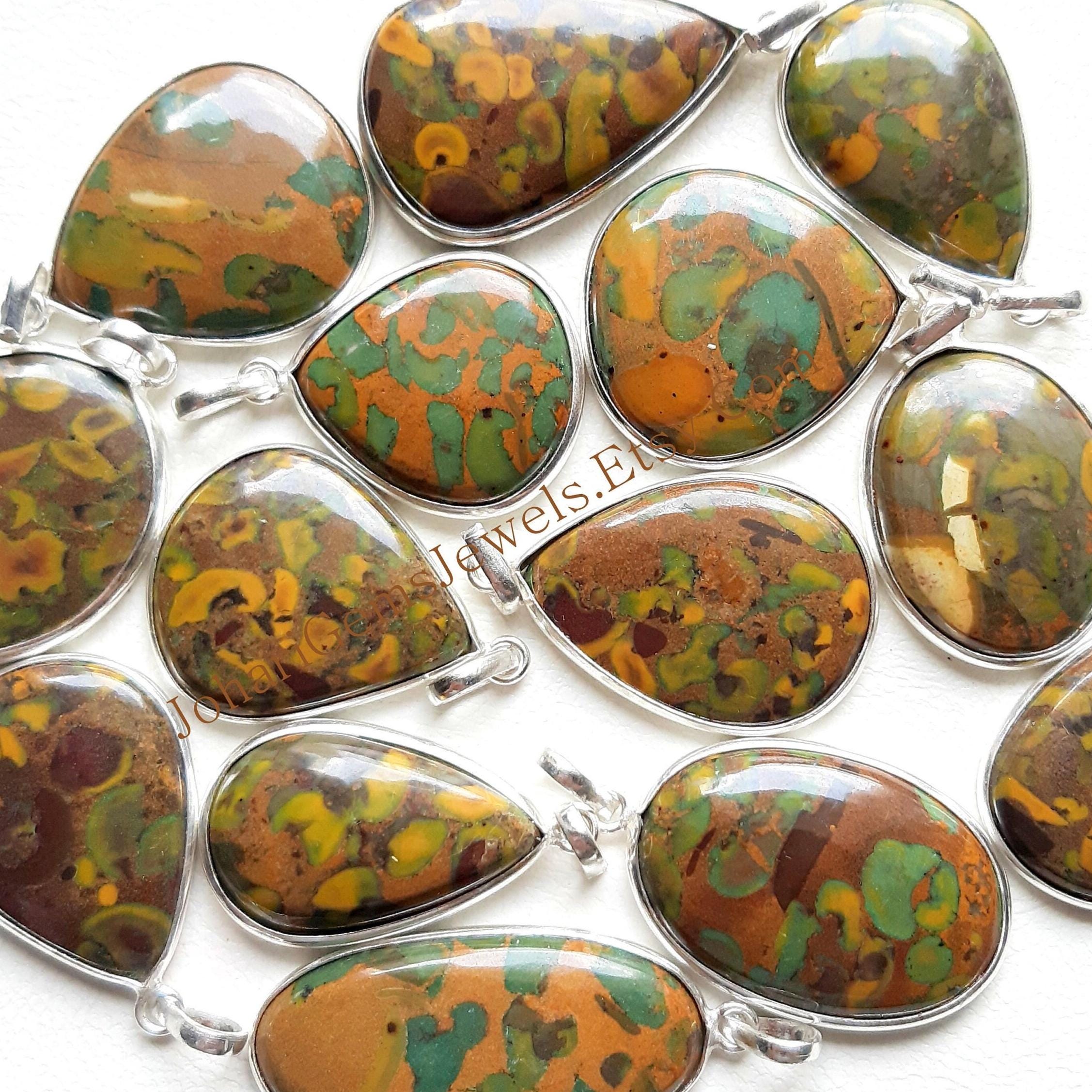 Fruit Jasper Gemstone Cabochon Pendants, 925 Silver Plated Pendant Necklace With Diffrent Size And Shape, Wholesale Lot, Handmade Pendant