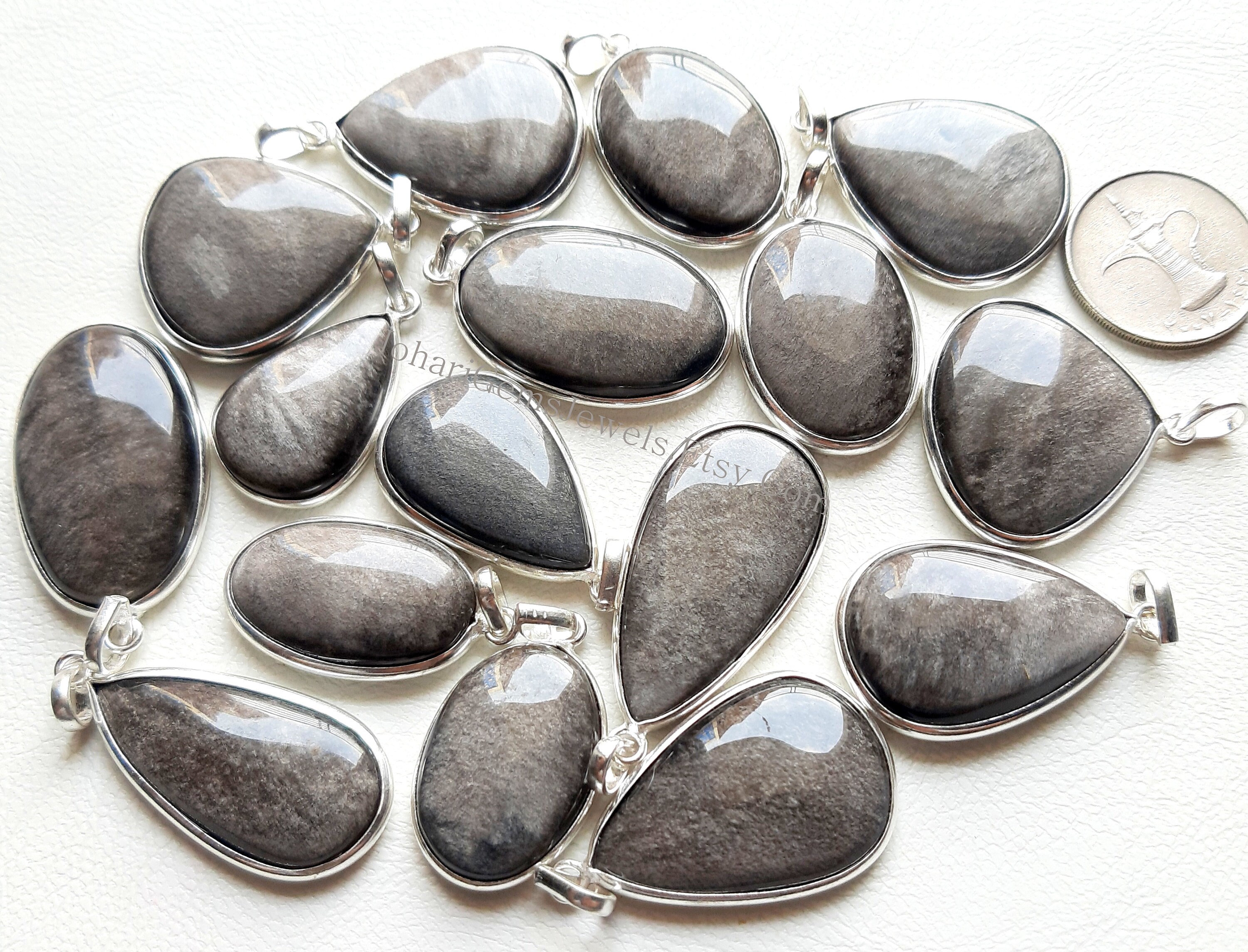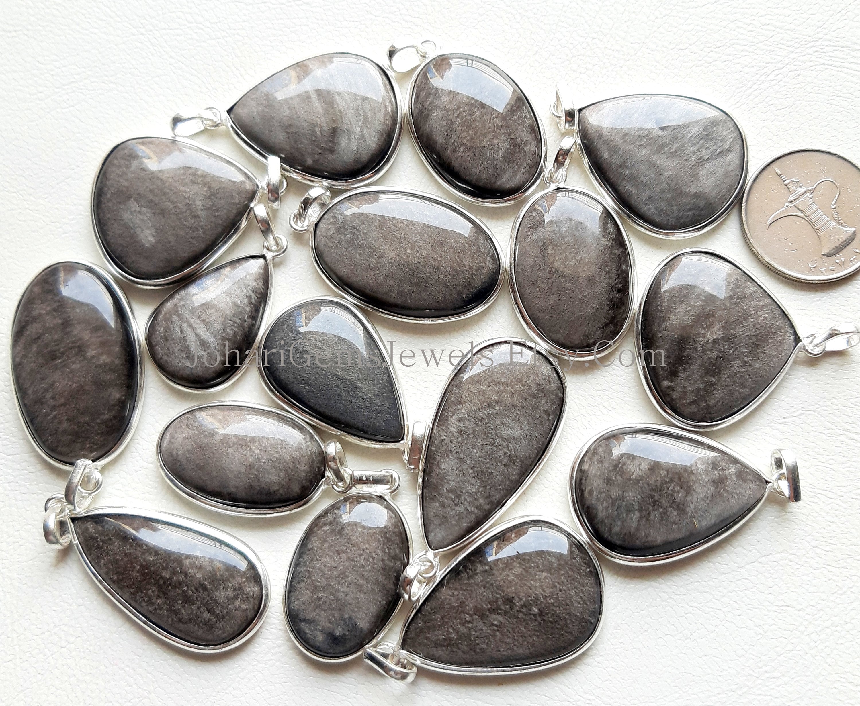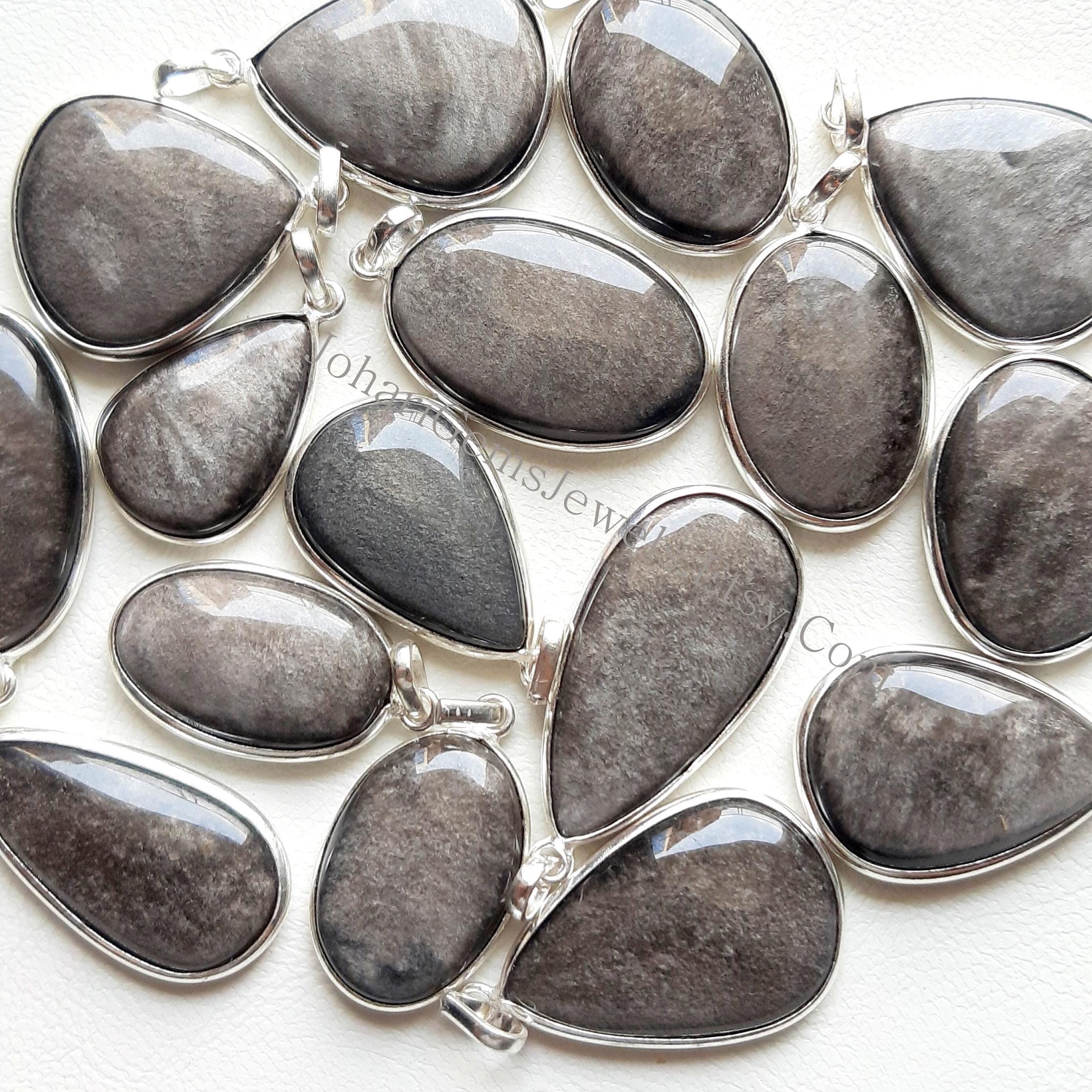 Silver Sheen Obsidian Gemstone Cabochon Pendants, 925 Silver Plated Pendant Necklace With Different Size And Shape, Wholesale Lot, Handmade Pendant