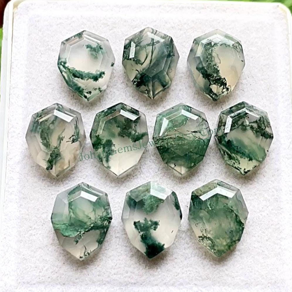 Natural Moss Agate Fancy Cut Pear Shape With Flat Back Gemstone 10 Pieces Lot, AAA+ Moss Agate Used For Jewelry Making