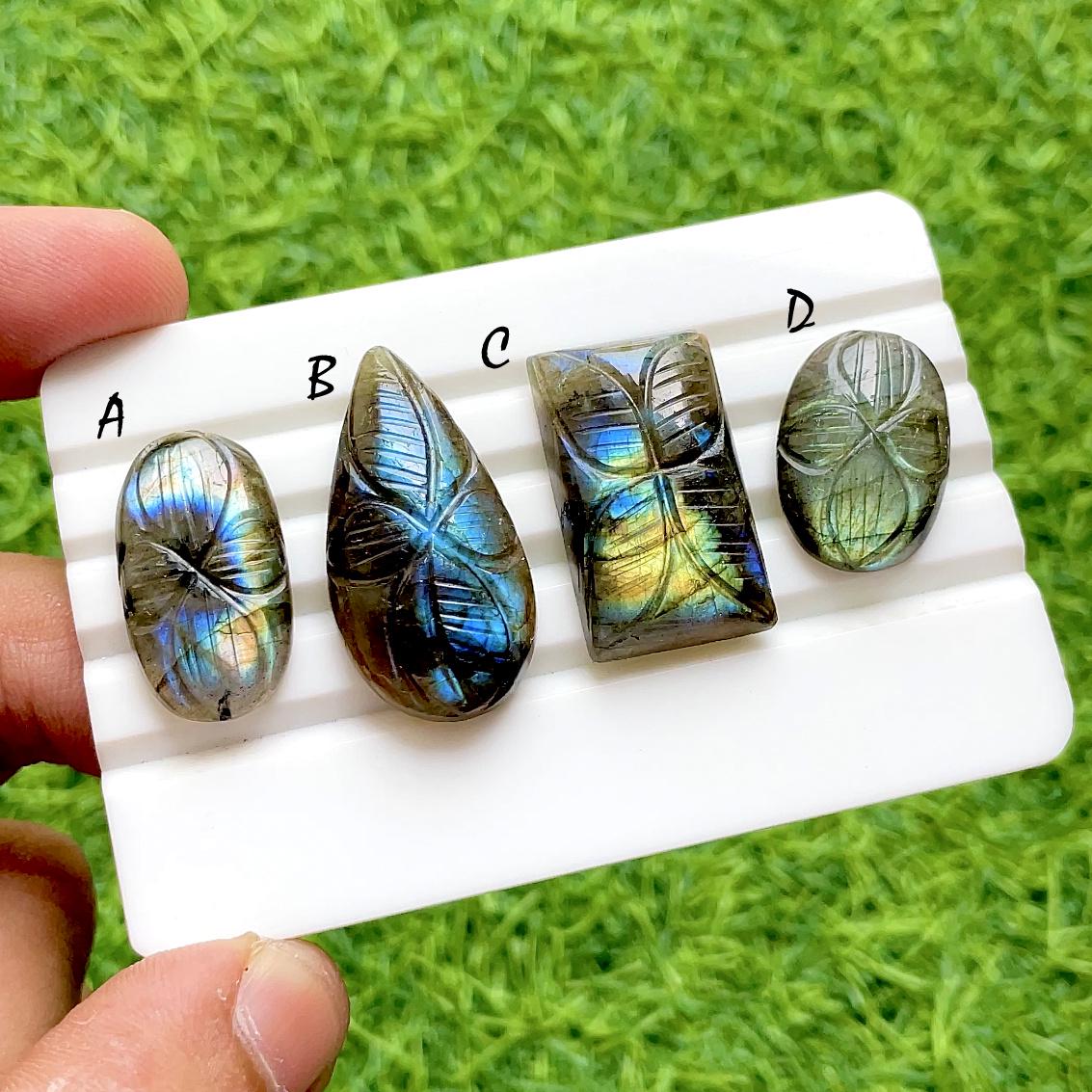 Mystic Forest Labradorite Carved Leaf Cabochon For Wire Wrap, Flashy Blue Fire Hand Carved Gemstones For Designer Jewelry