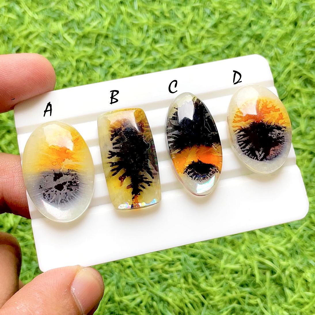Golden Ember Dendritic Doublet Cabochon For Wire Wrap, Scenic Landscape Designer Jewelry Making Stones, Unique Artisan Gems