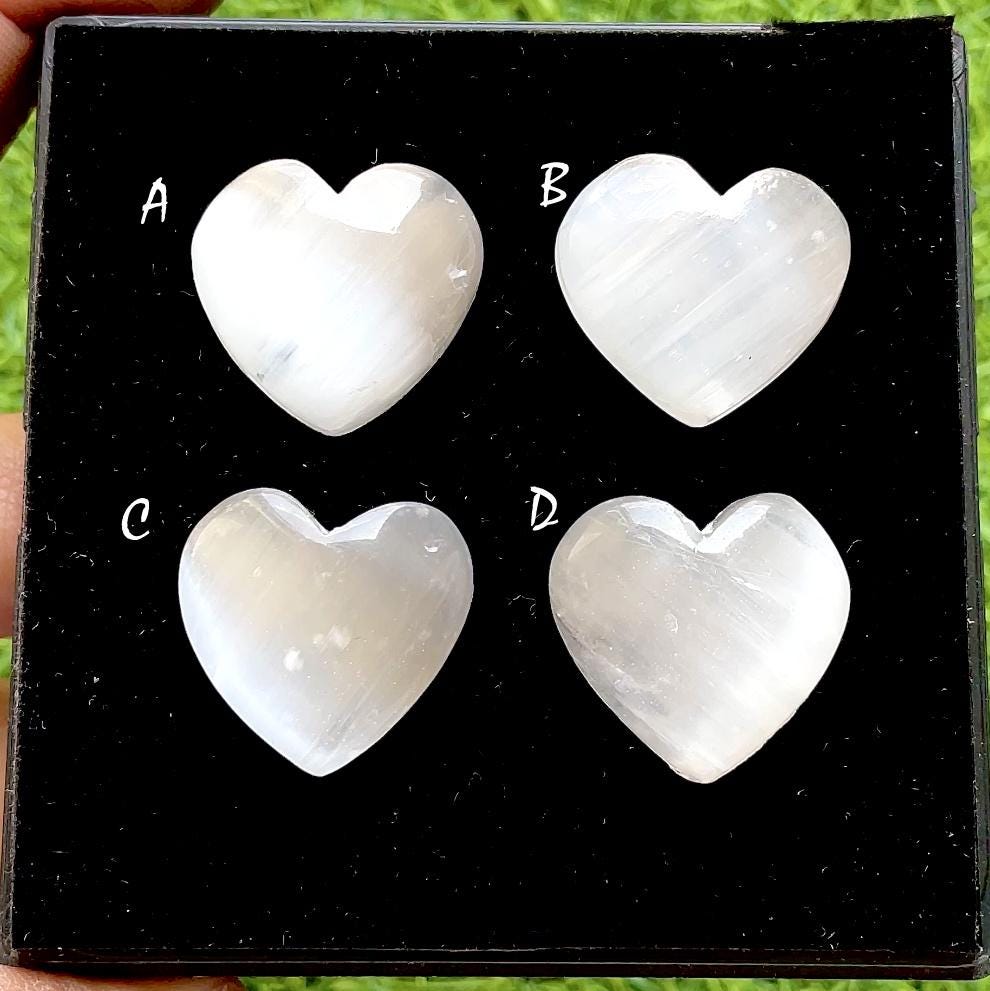Ethereal Moon Glow Selenite Heart Cacbochon For Wire Wrap, Hand Carved Crystal Hearts For Jewelry Making, Healing Stone Decor